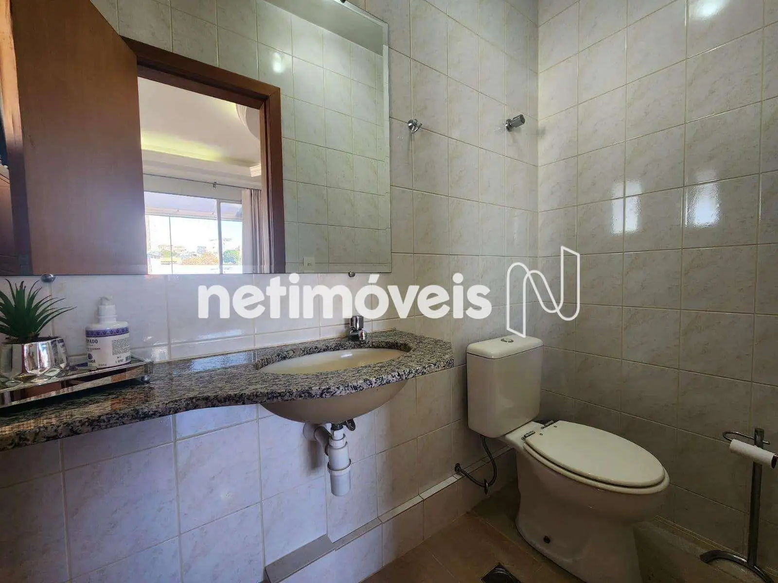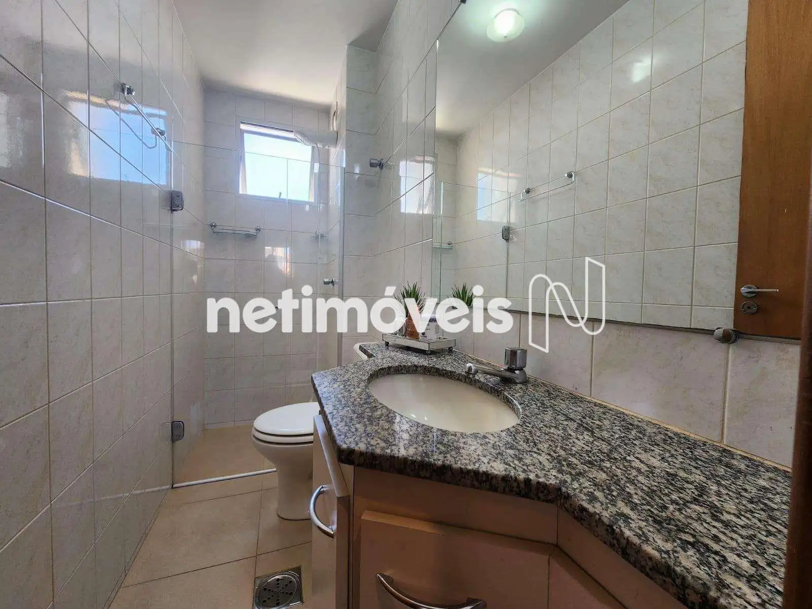 - Banho social com bancada em granito, piso em porcelanato.