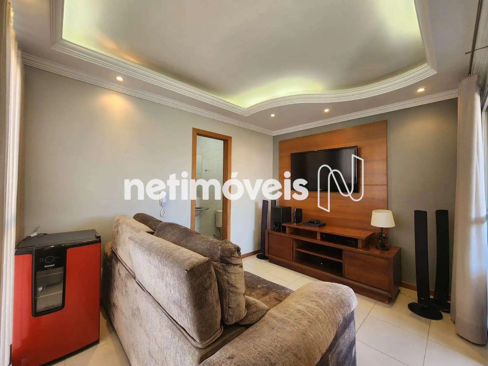 - Sala ampla para 02 ambientes, teto rebaixado em gesso, com iluminação interna,