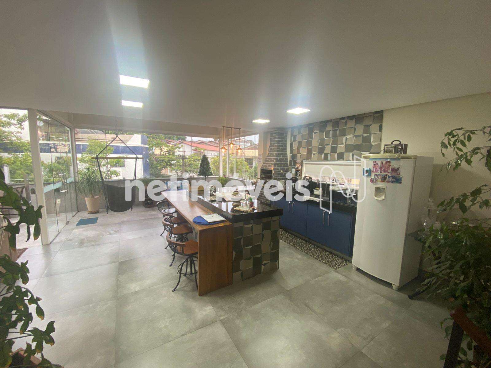 Amplo apartamento cobertura com três quartos com armários, piso em porcelanato, sendo uma suite com armários, box blindex, bancada em granito, piso e paredes em porcelanato. Banho social com armário, box blindex, piso e paredes em cerâmica. Cozinha planejada, área de serviço. DCE. Escritório. Cobertura com espaço gourmet, bancada em granito, com armários. Sala para de TV em teto rebaixado, iluminação bem distribuida. Fechamento em vidro.