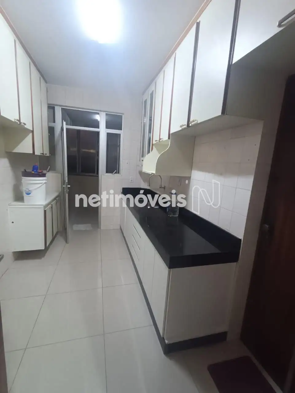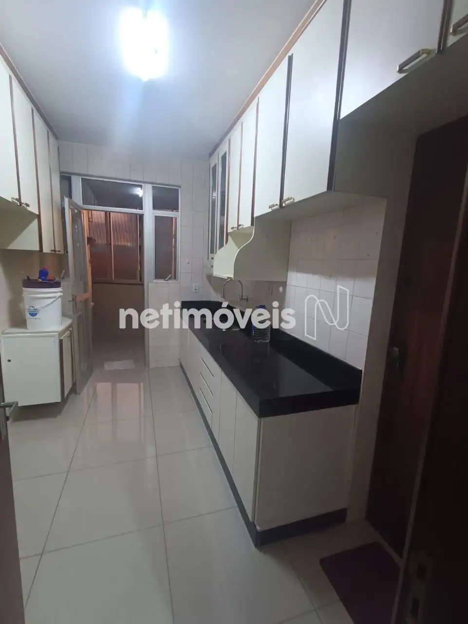 cozinha com armários planejados, área de serviço separada, com um cômodo extra ideal para despensa.