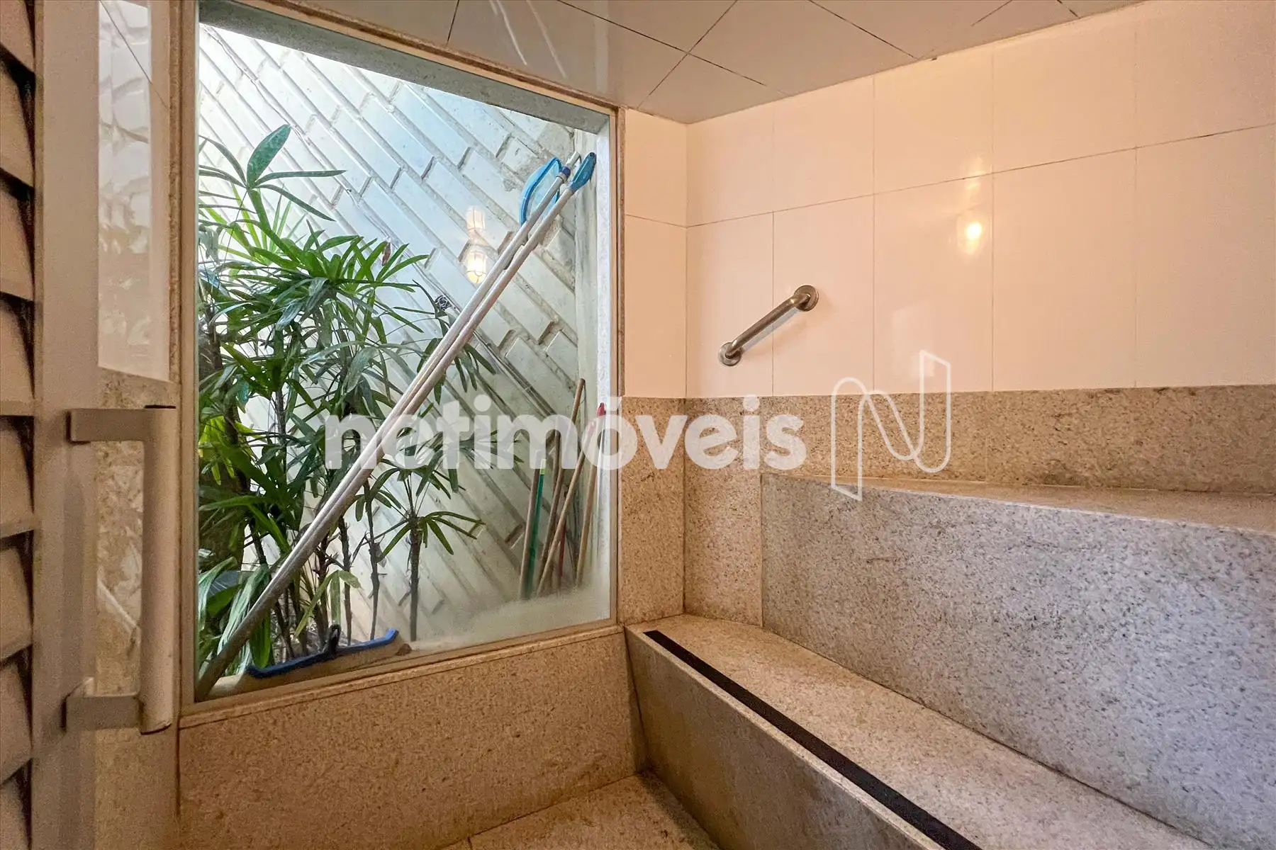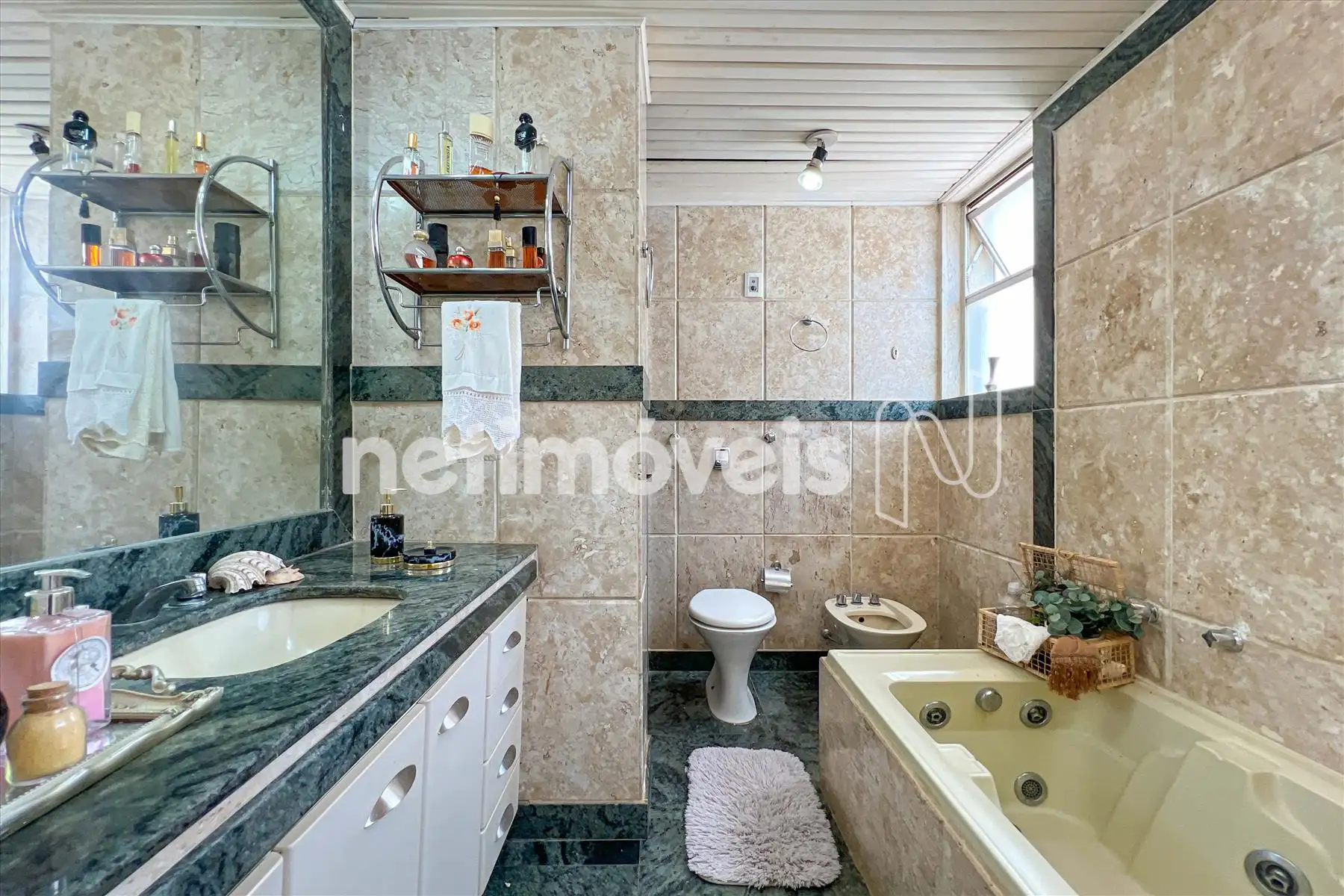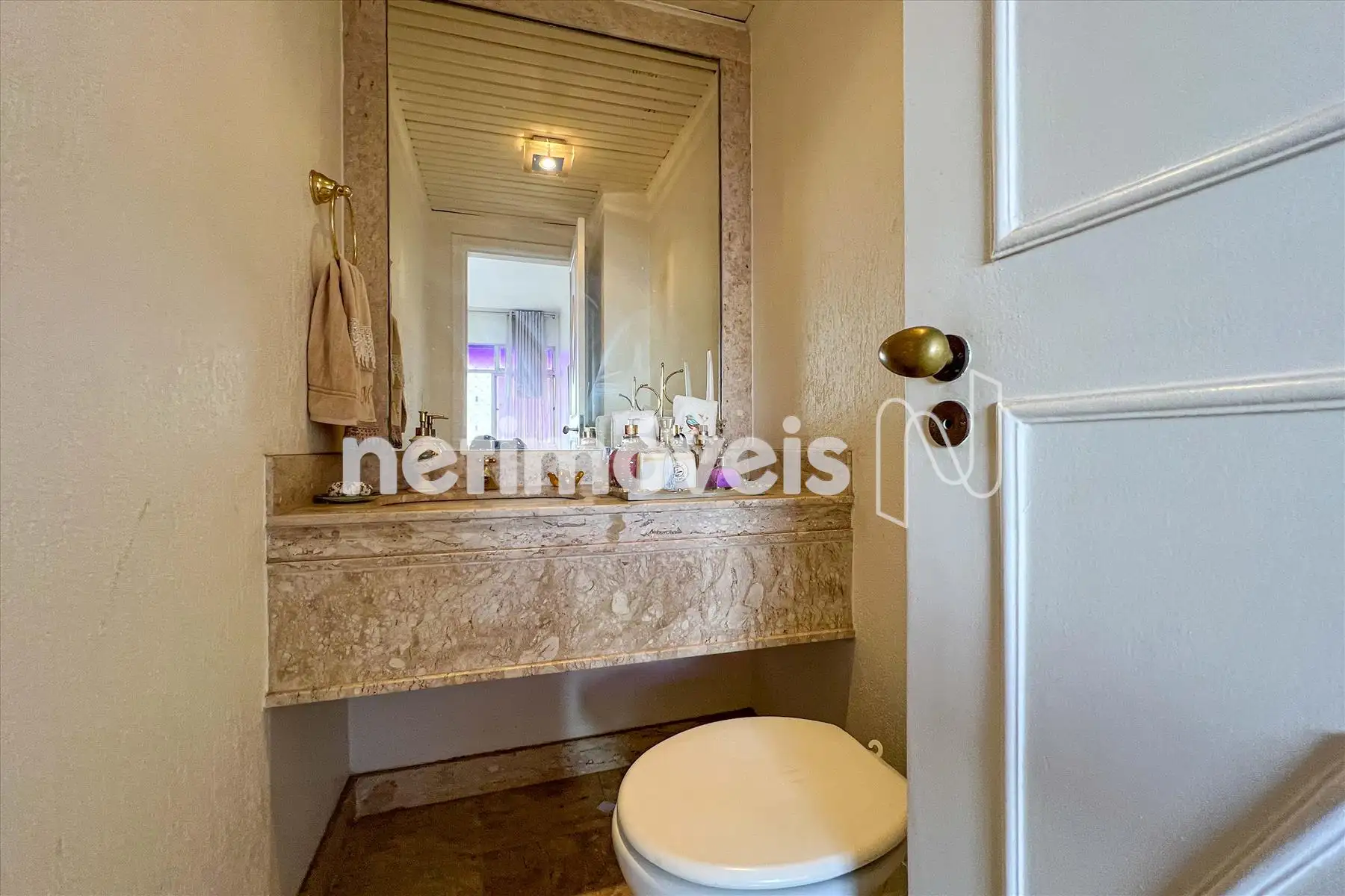 Lavabo com piso e bancada em mármore;
