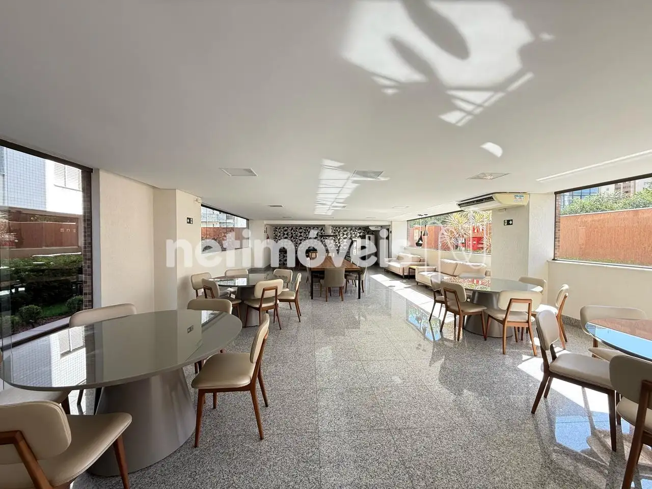 Sala ampla para 02 ambientes com lavabo e ar condicionado;