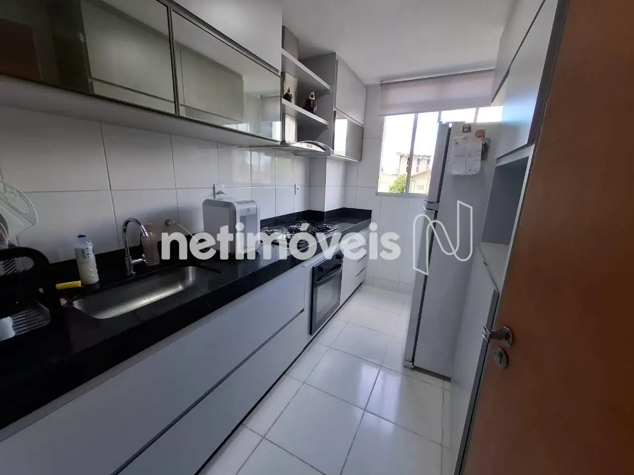 Cozinha com Bancada em granito e armários sob bancada ,