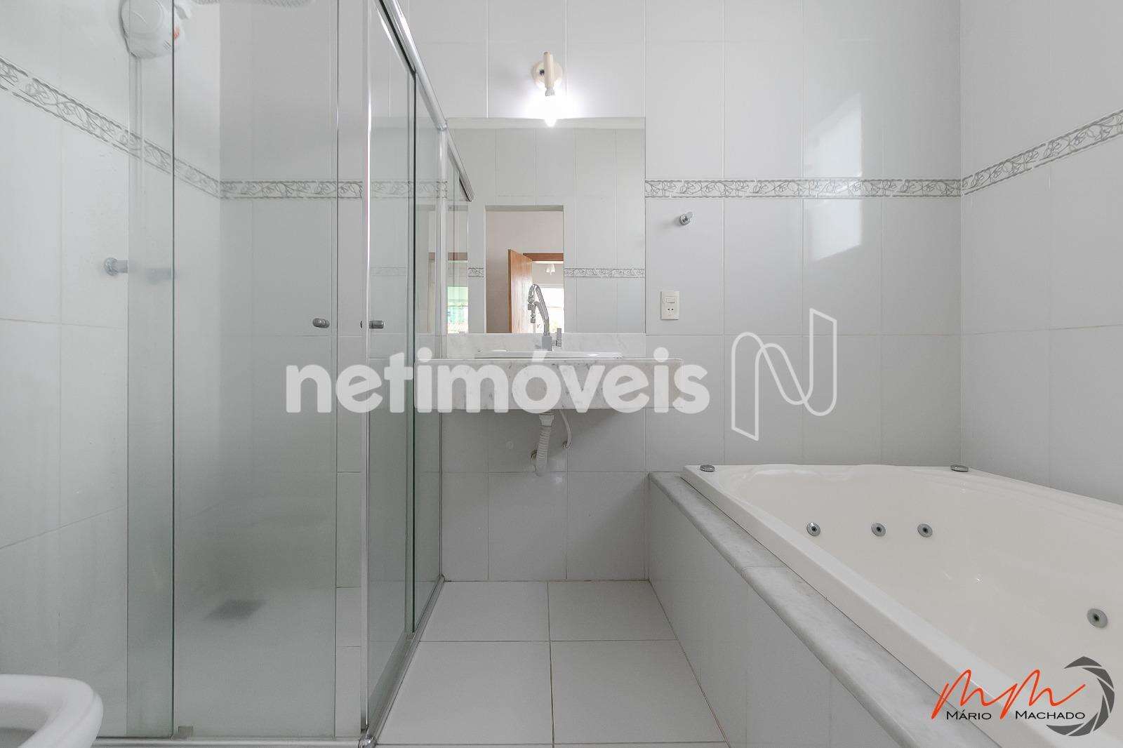 Banho Suíte, piso em porcelanato e bancada em mármore, box em blindex, banheira de Hidromassagem,