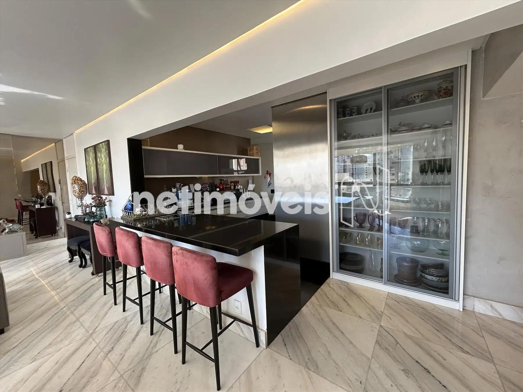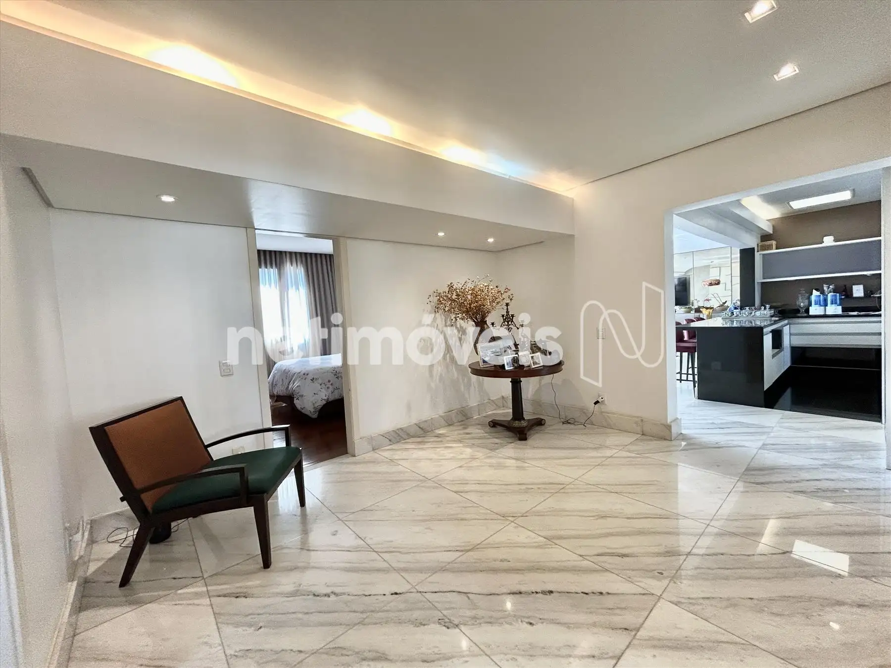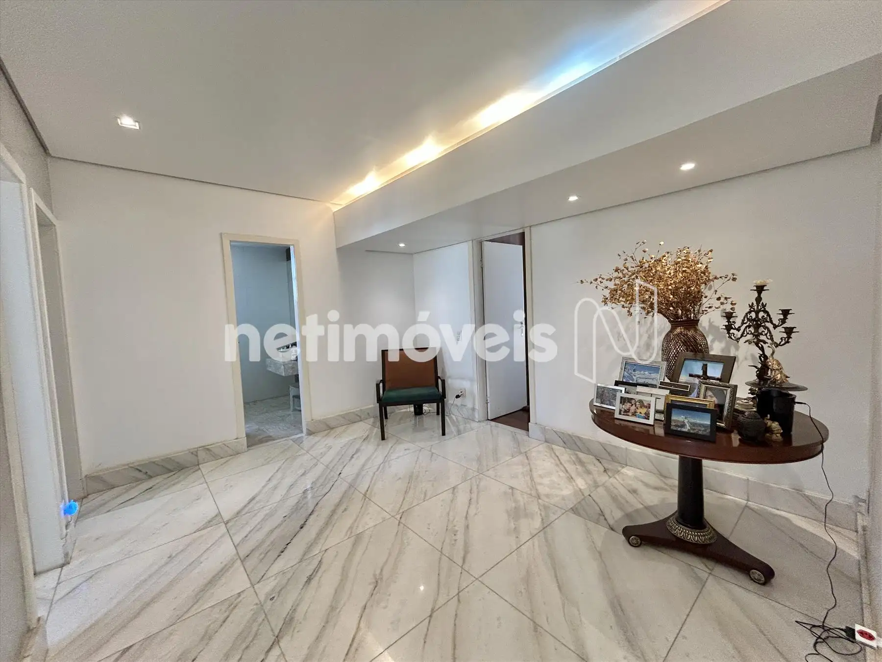 - Ampla sala para 03 ambientes, teto rebaixado com projeto de iluminação, piso em mármore.