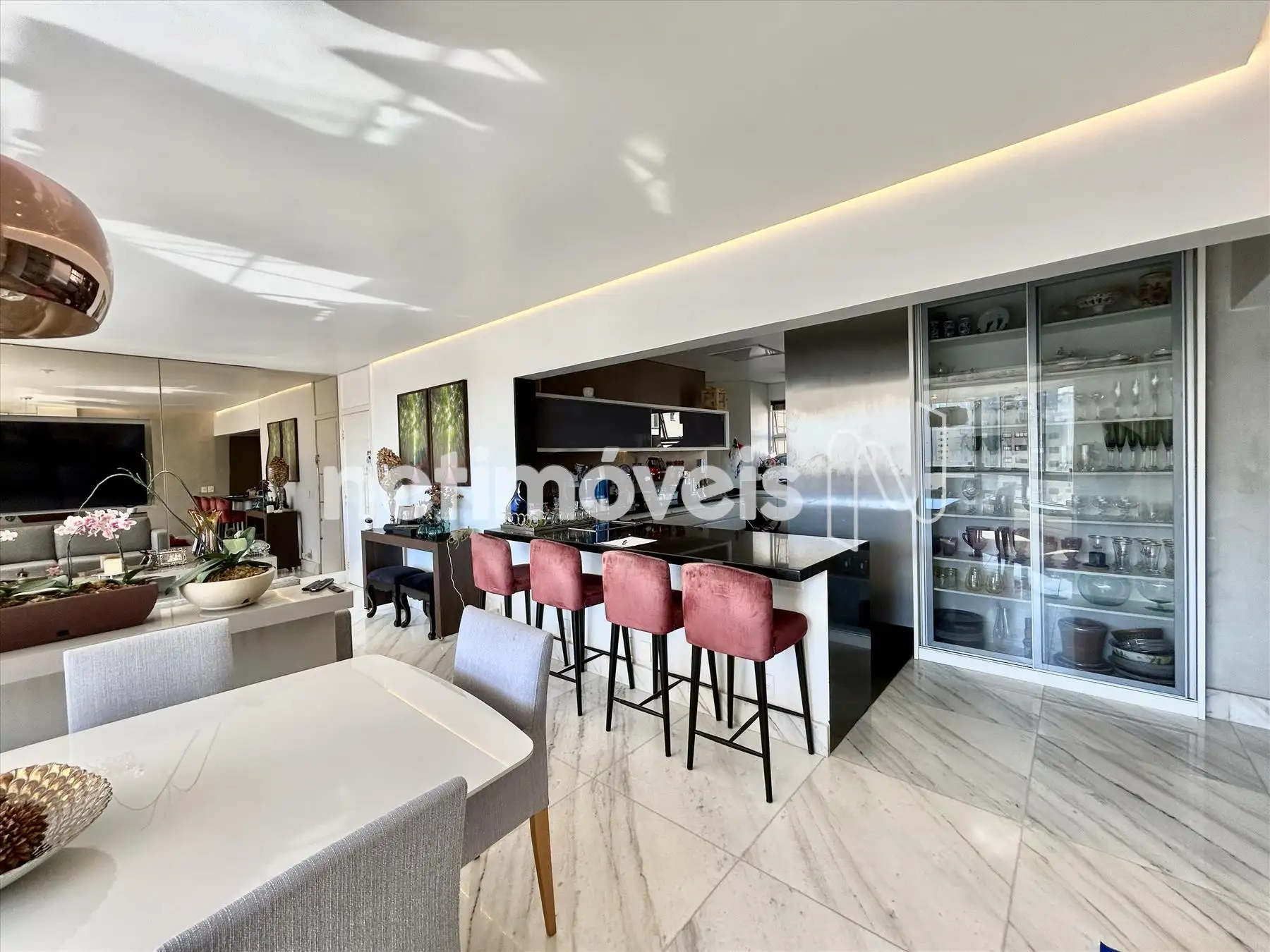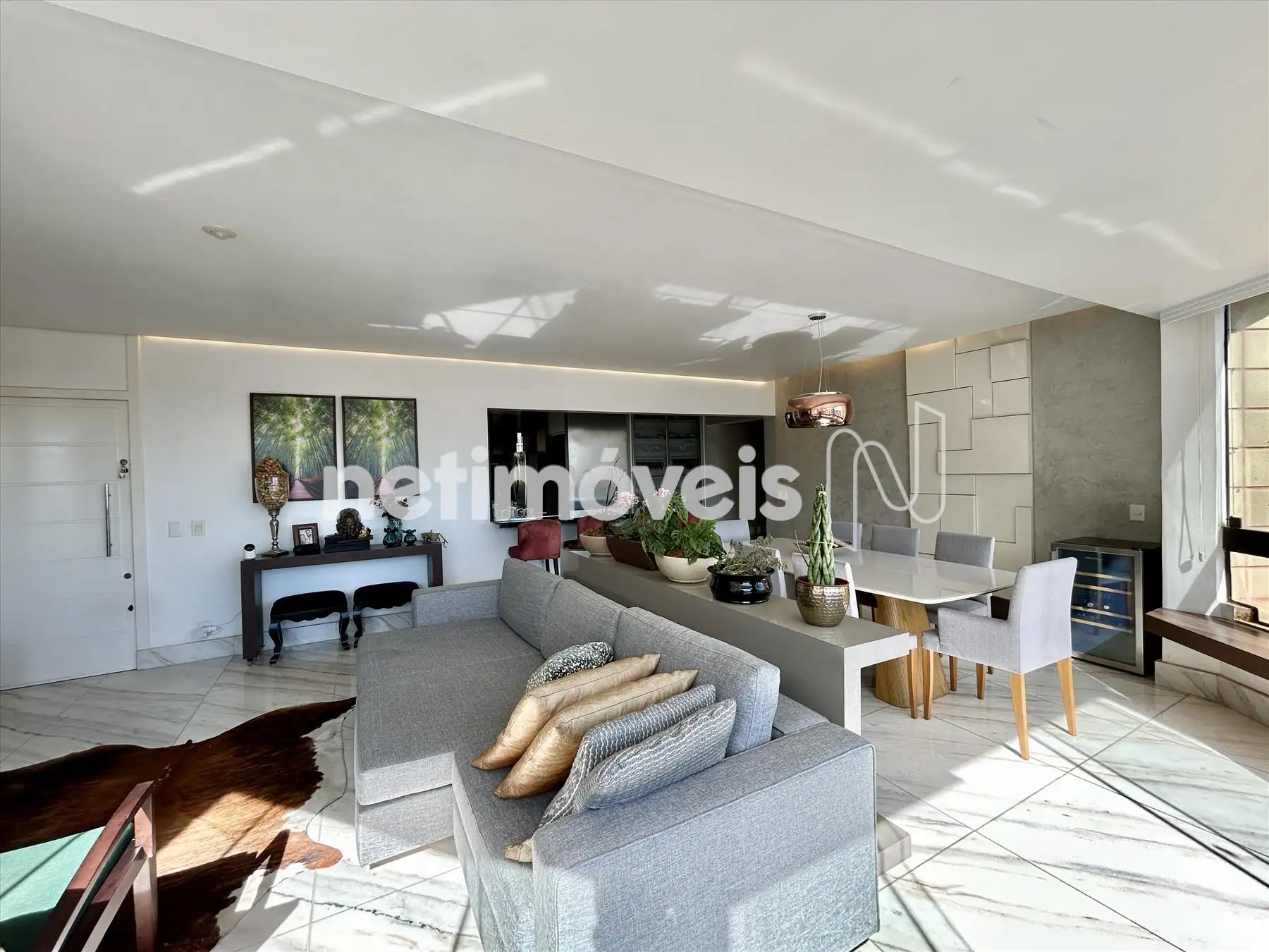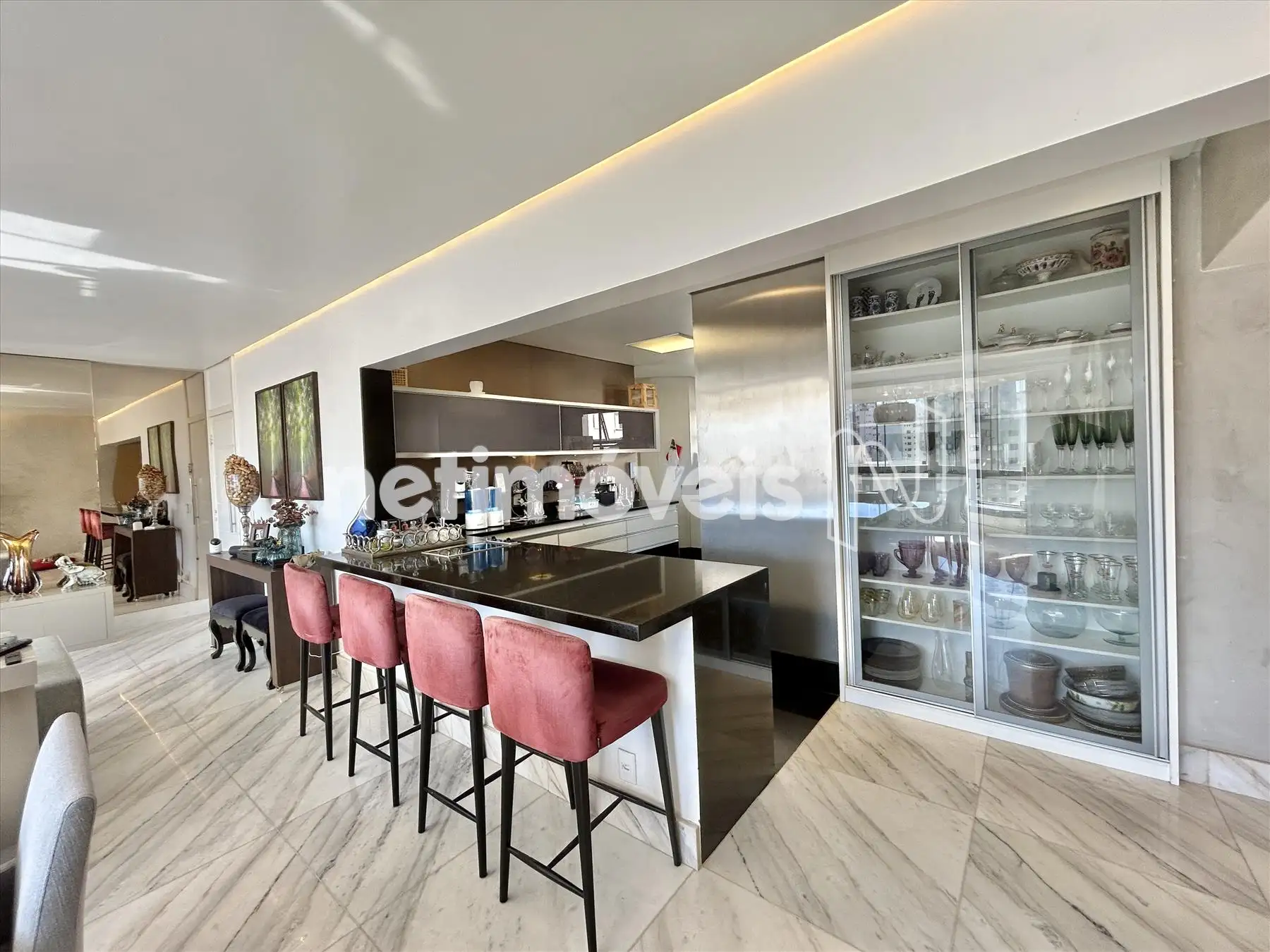 - Ampla sala para 03 ambientes, teto rebaixado com projeto de iluminação, piso em mármore.