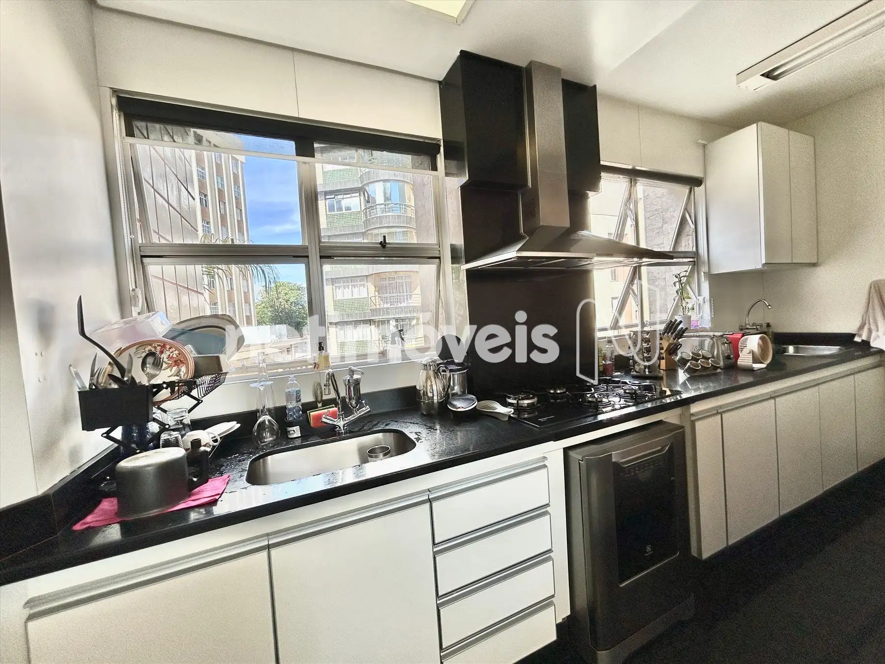 - Área de serviço com janela, tanque e armários.