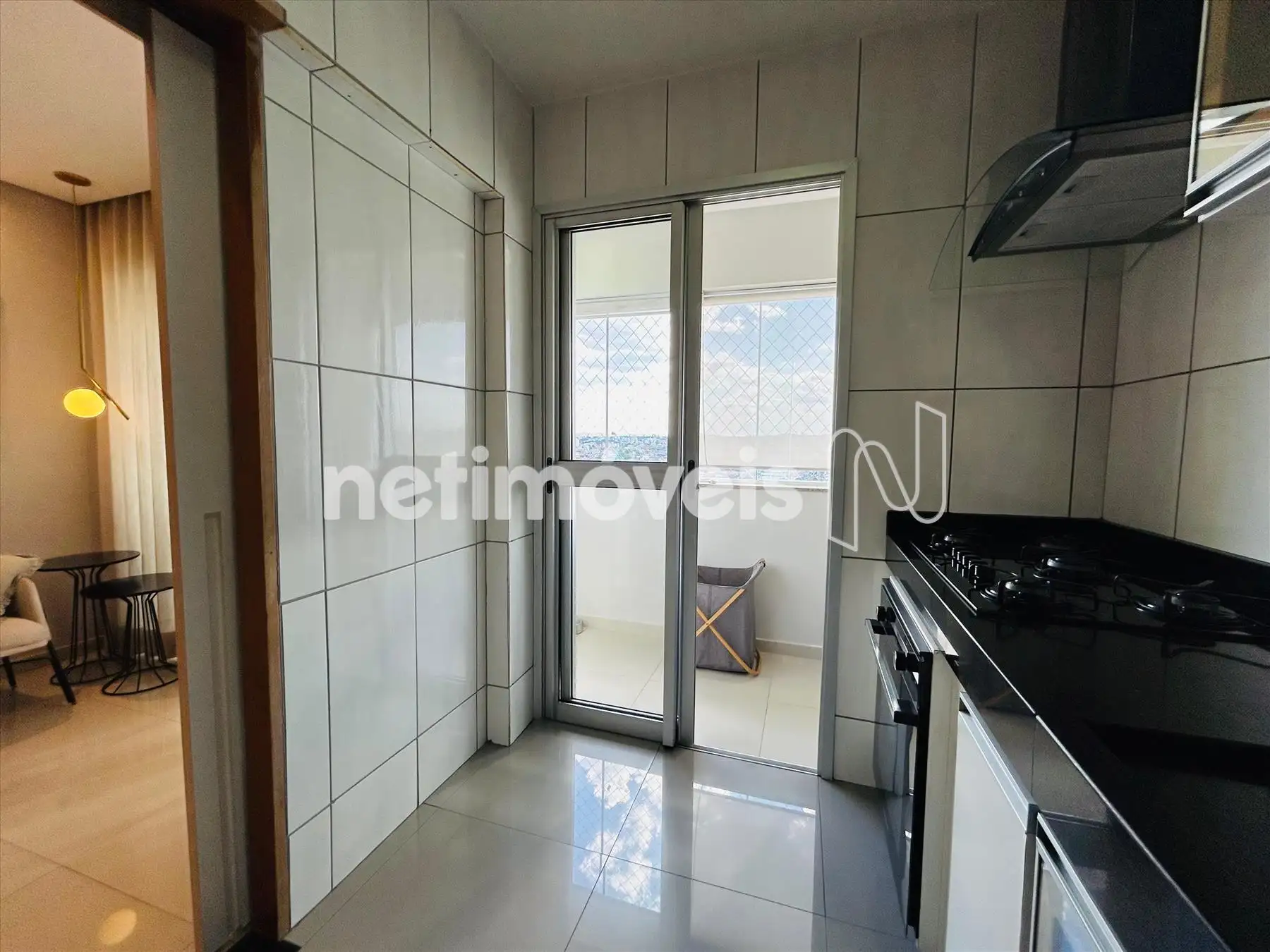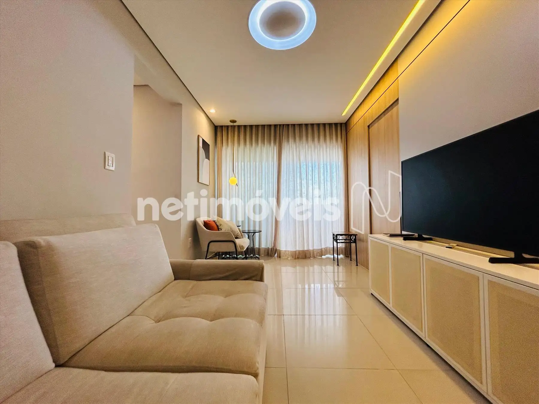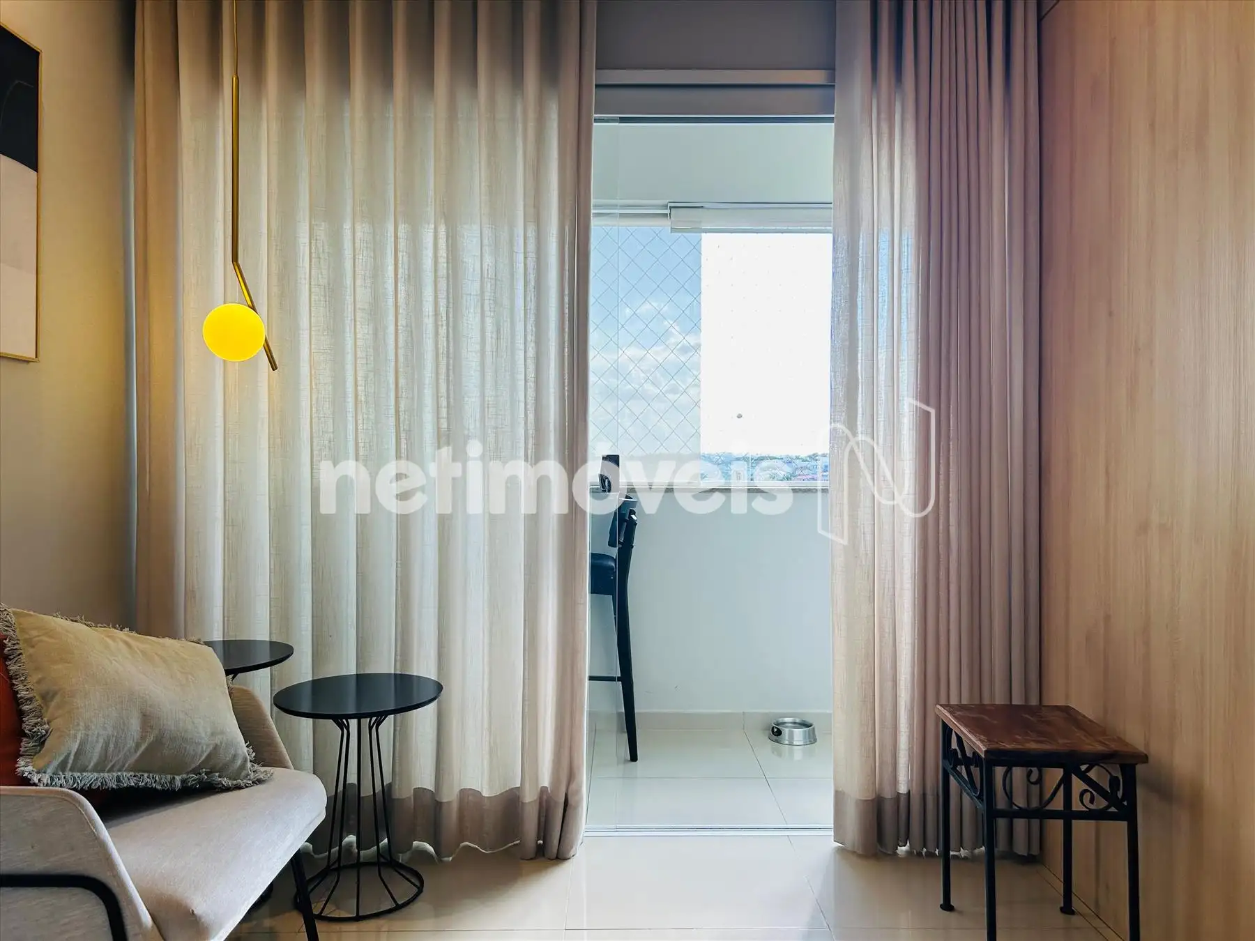 Sala com varanda incorporada, com piso em porcelanato