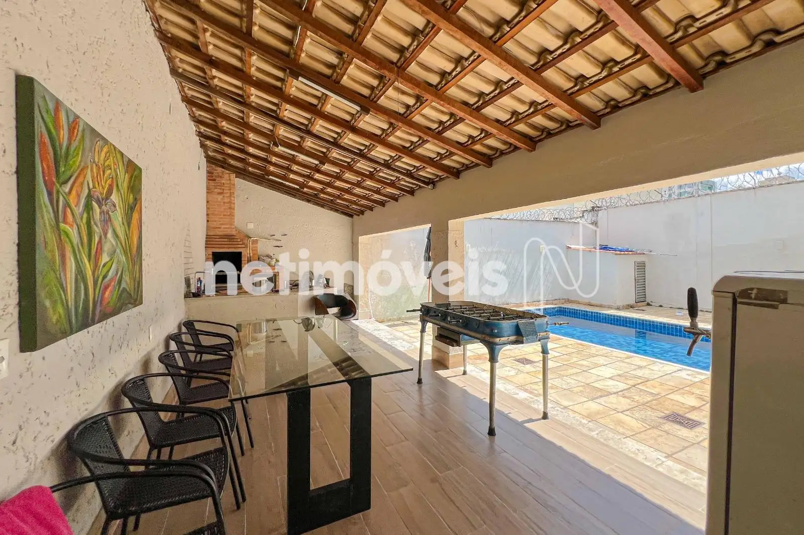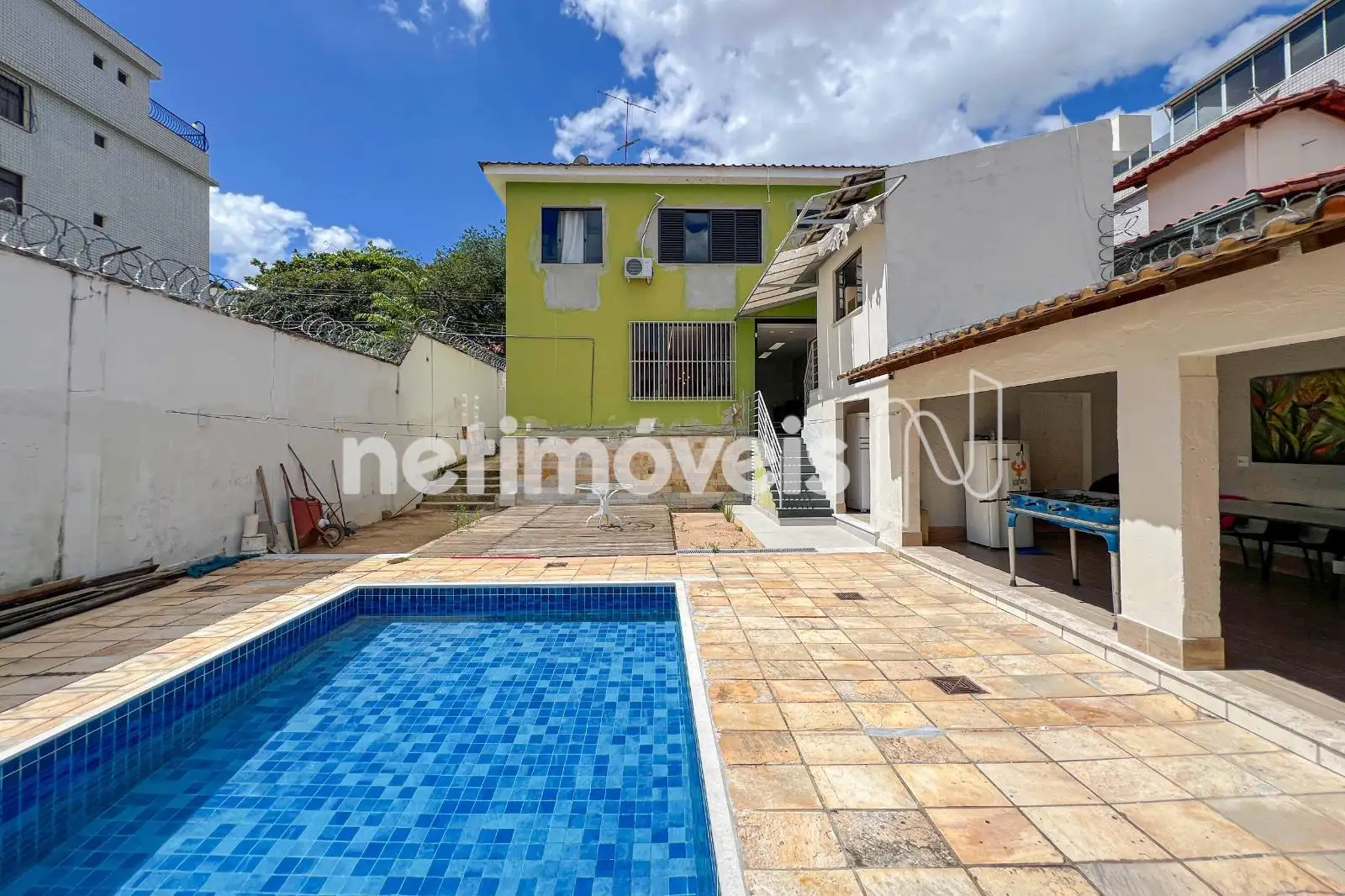 No 1º piso, são 3 salas amplas com piso em mármore, 01 quarto de hospede, lavabo, varanda, além de cozinha espaçosa com bancada em granito e armários novos, oferecendo estrutura completa para receber com conforto. Amplo quintal de fundo da casa com piscina grande em pastilha 100% reformada, Espaço Gourmet com churrasqueira e lavabo; grande deck de madeira, além da lavandeira; 4 vagas de estacionamento na frente da casa.