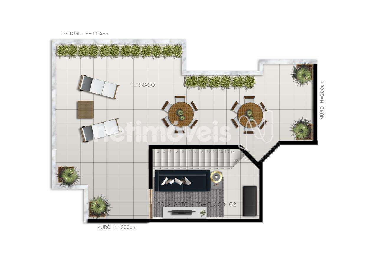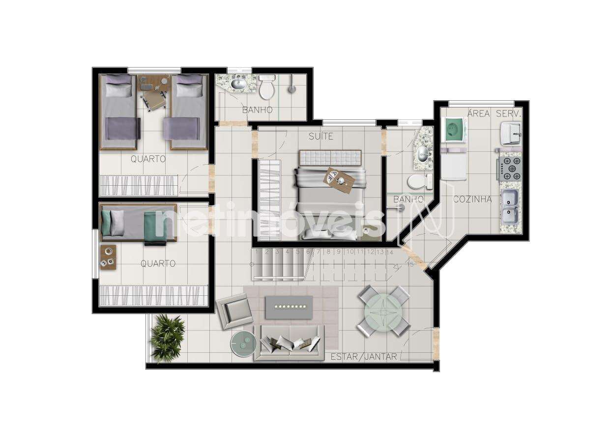 suíte, sala para 02 ambientes com piso em porcelanato,