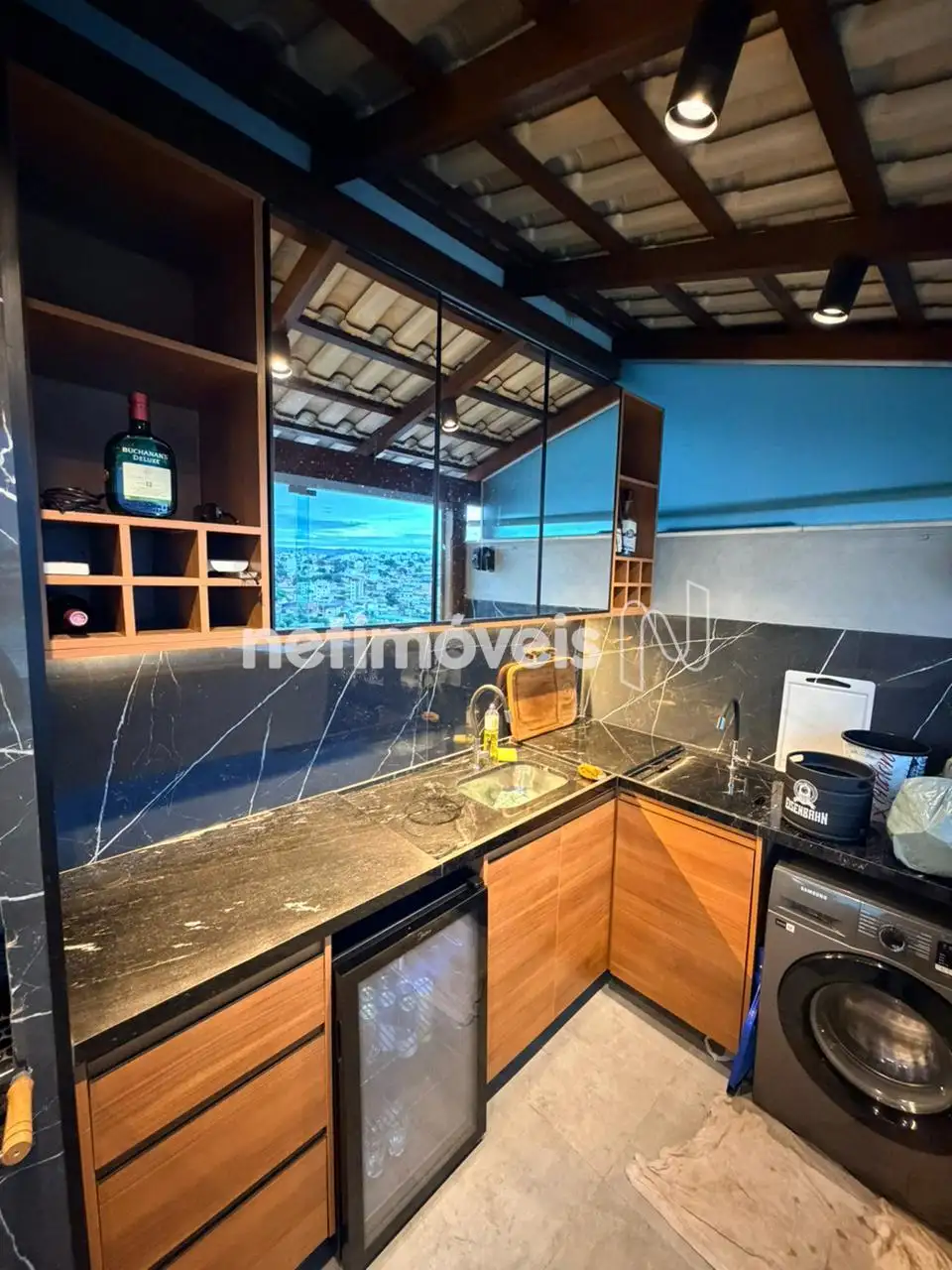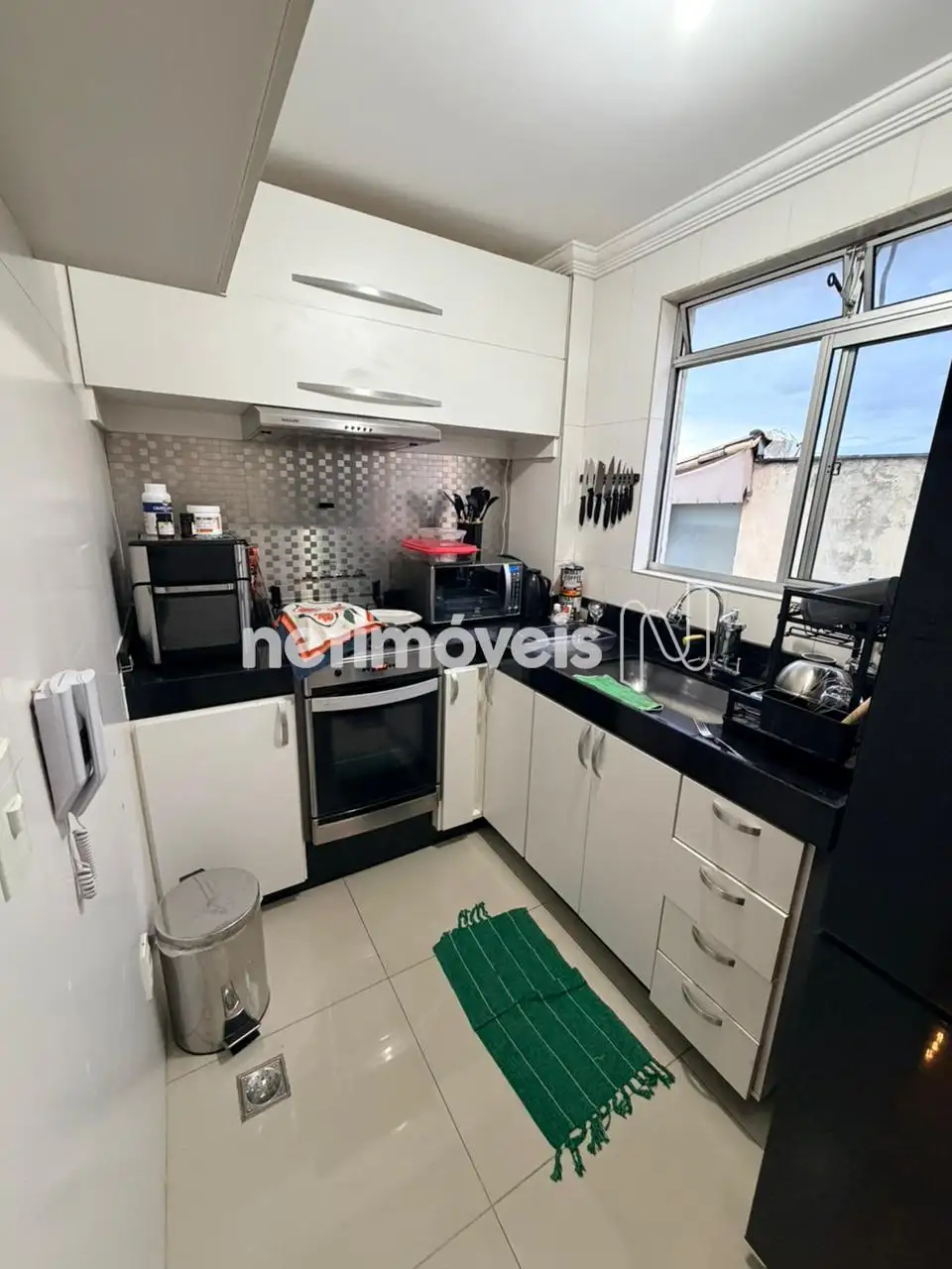- Cozinha e área de serviço, com armários .