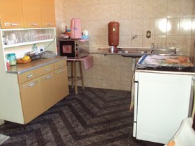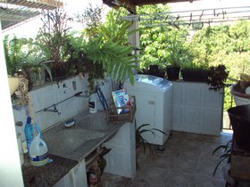 Cozinha , bancada inox e armário. Área de serviço