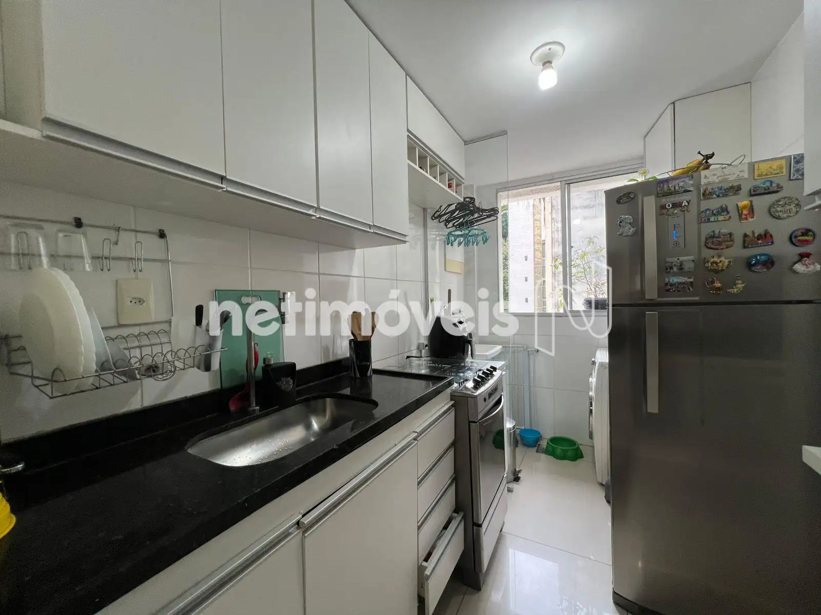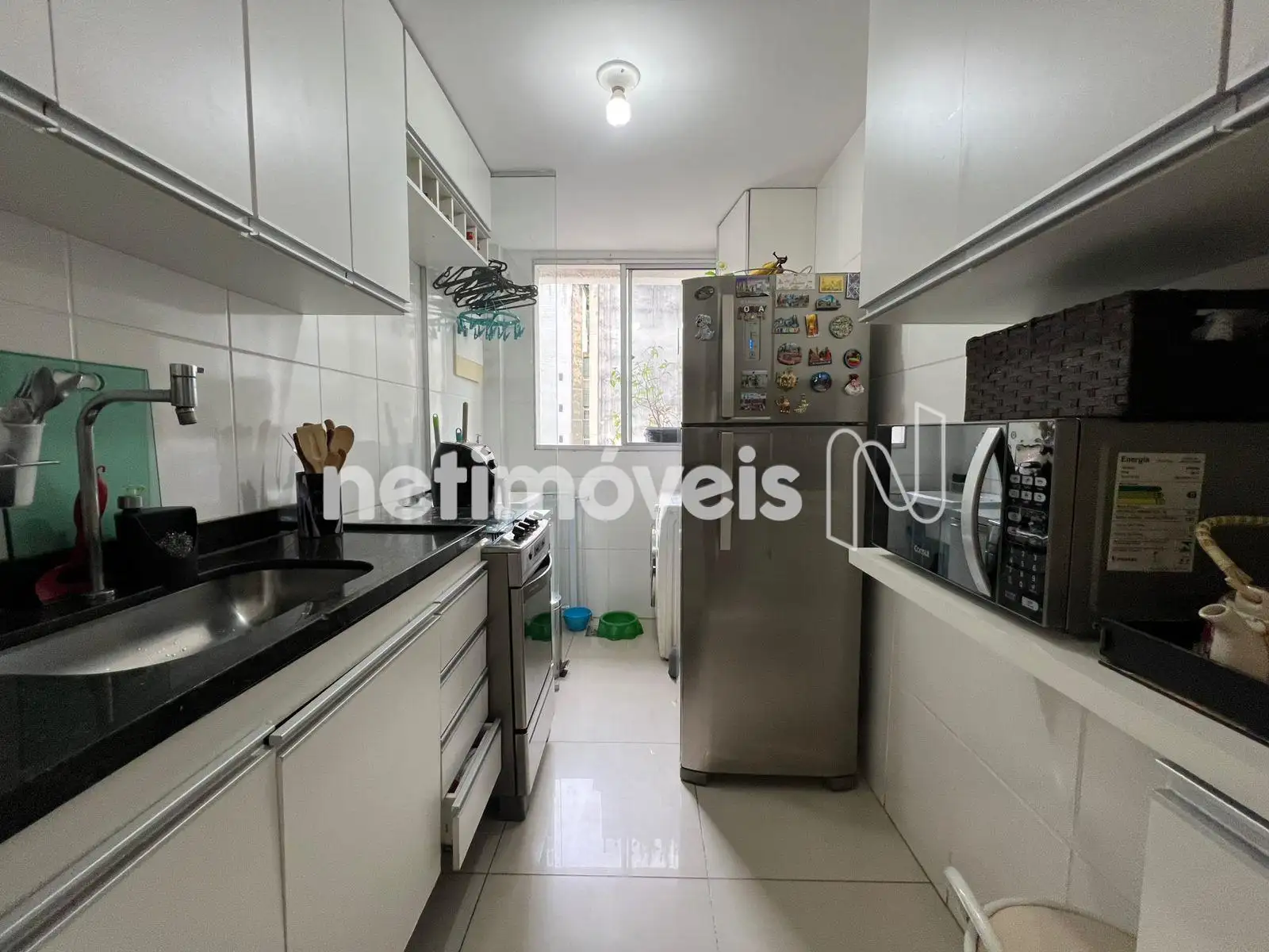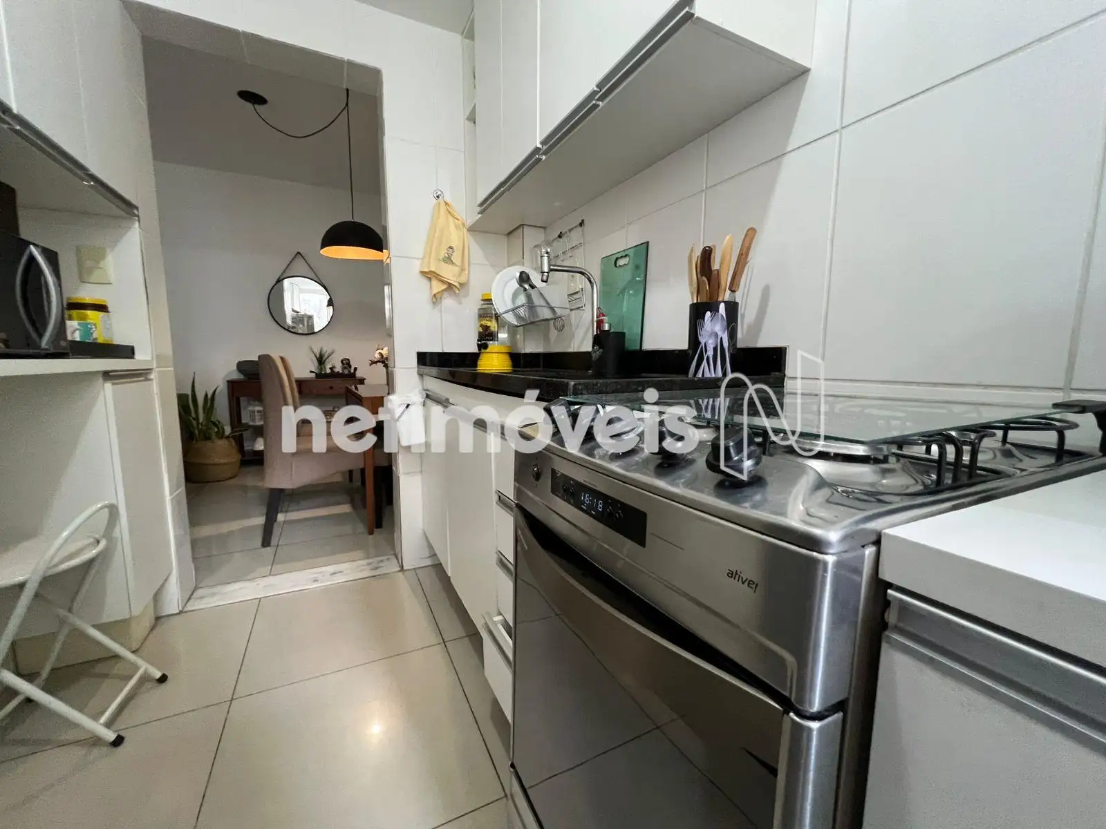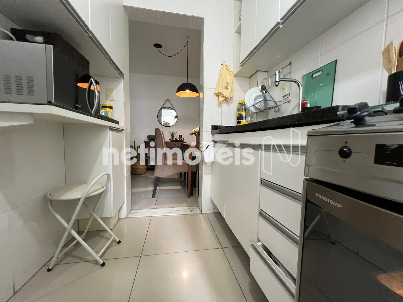- Cozinha com bancada em granito e piso em porcelanato;