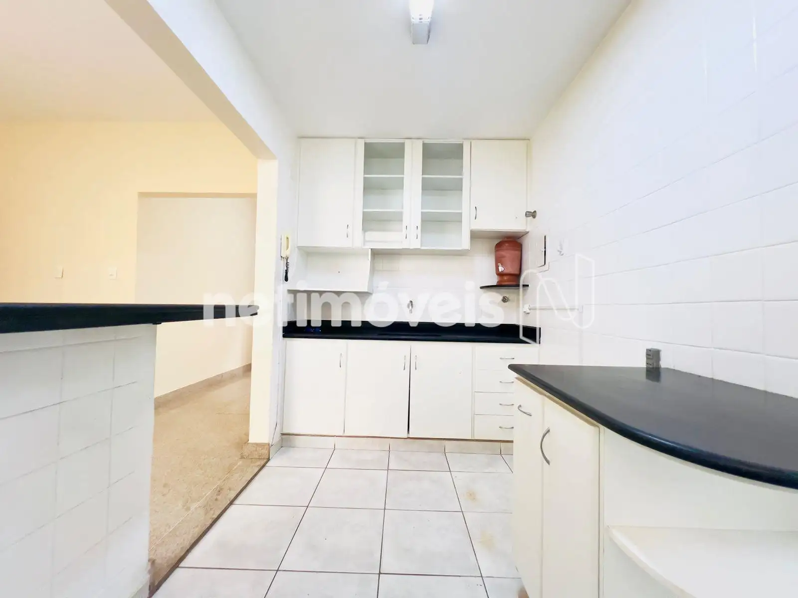 Cozinha americana, piso cerâmica, bancada em granito com armários.