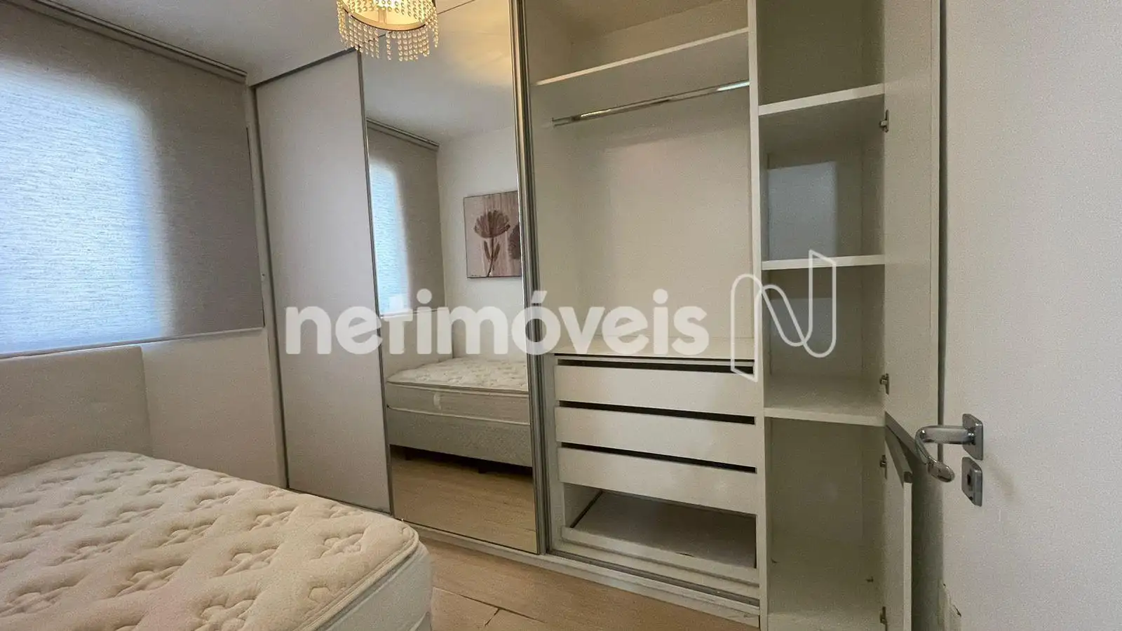 2 quartos com armários, piso em laminado, sendo 1 suíte.