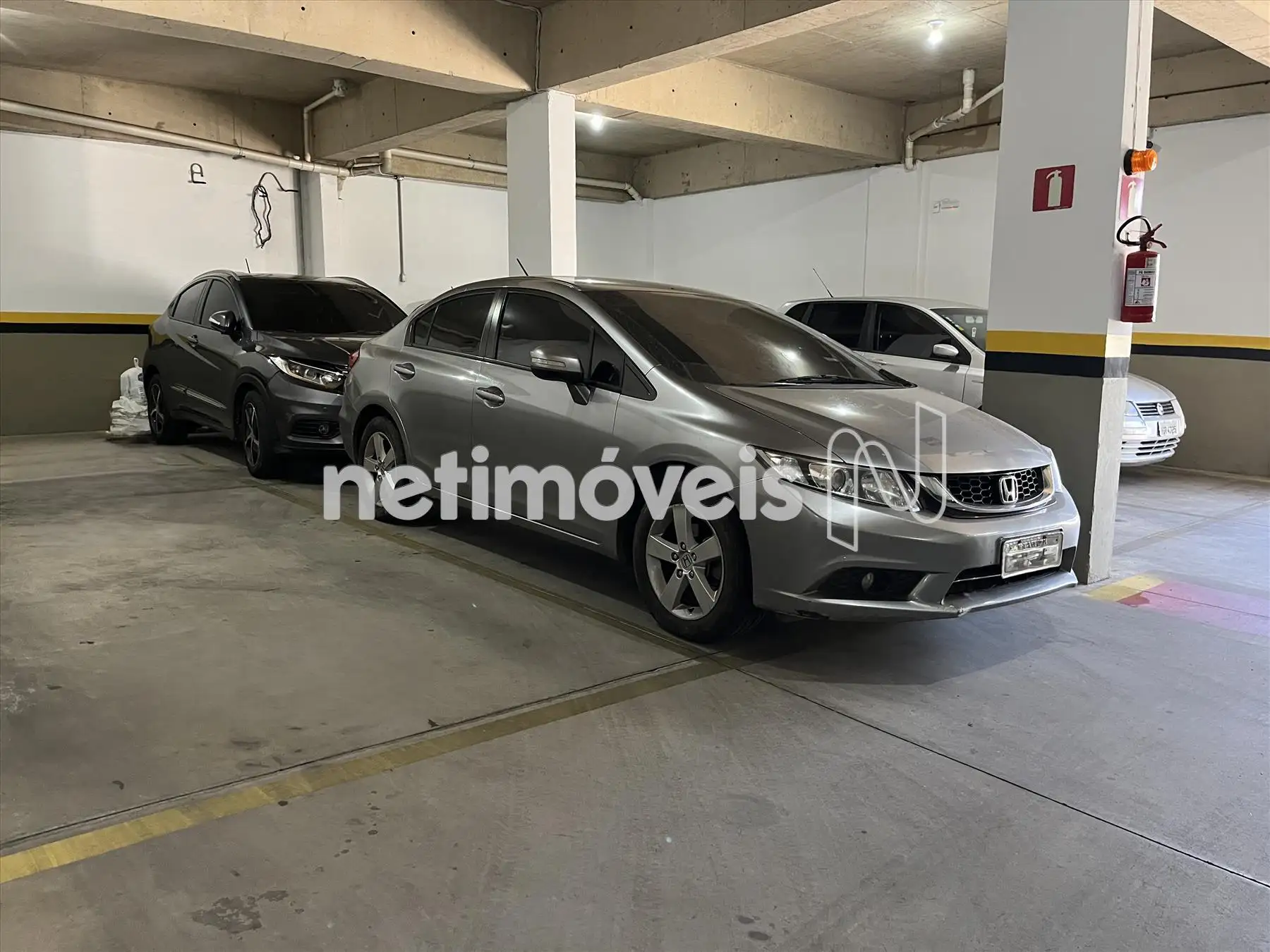 2 vagas de garagem em linha pelo próprio apartamento, portanto livres, cobertas e demarcadas.