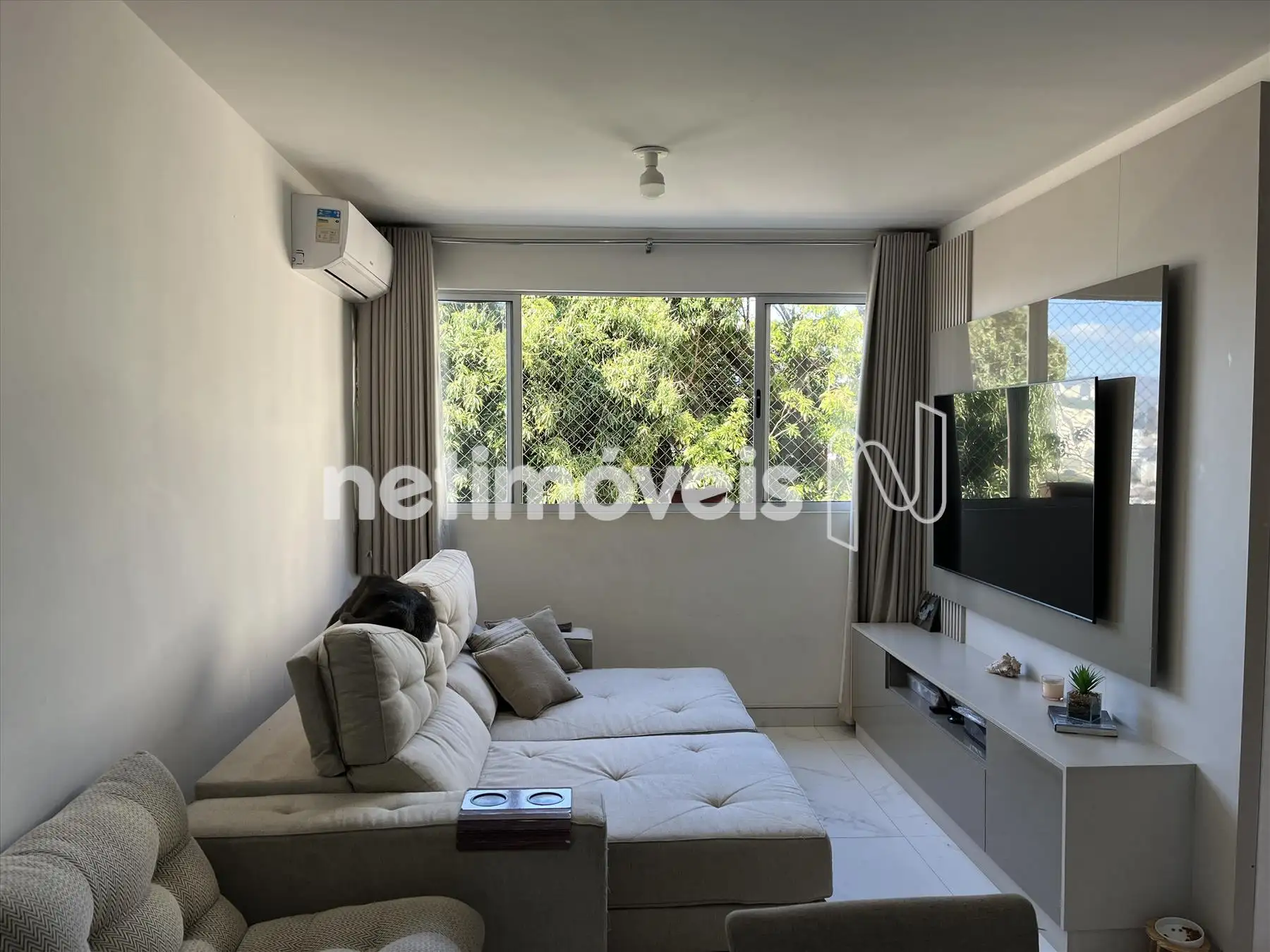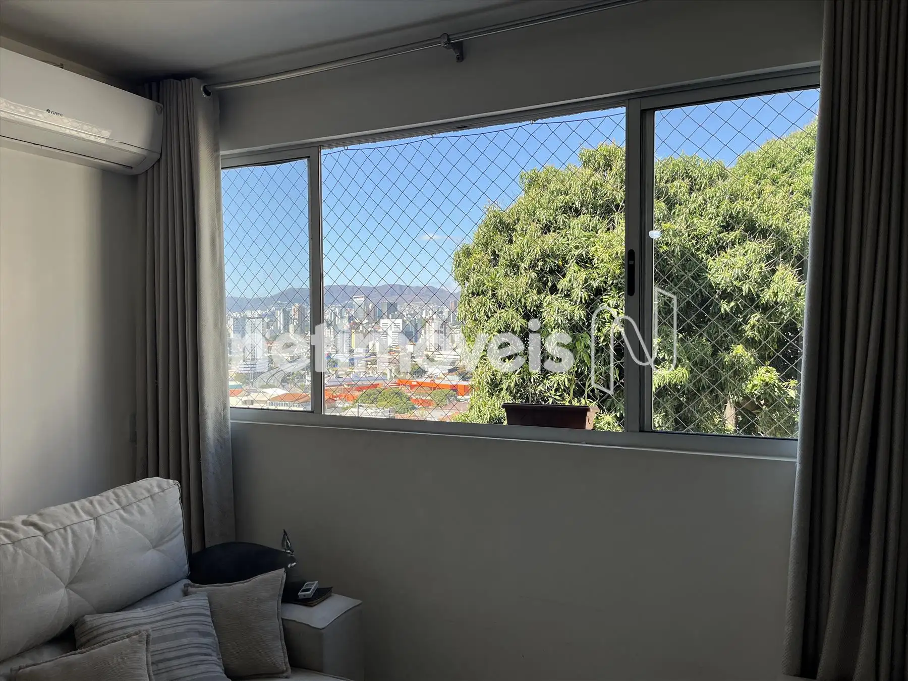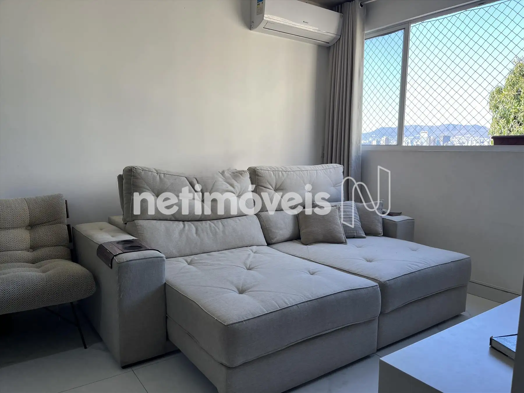 Apartamento: Sala para dois ambientes clara e arejado, com belíssima vista para Serra do Curral, piso em porcelanato, ar condicionado o painel de tv fica no imóvel;
