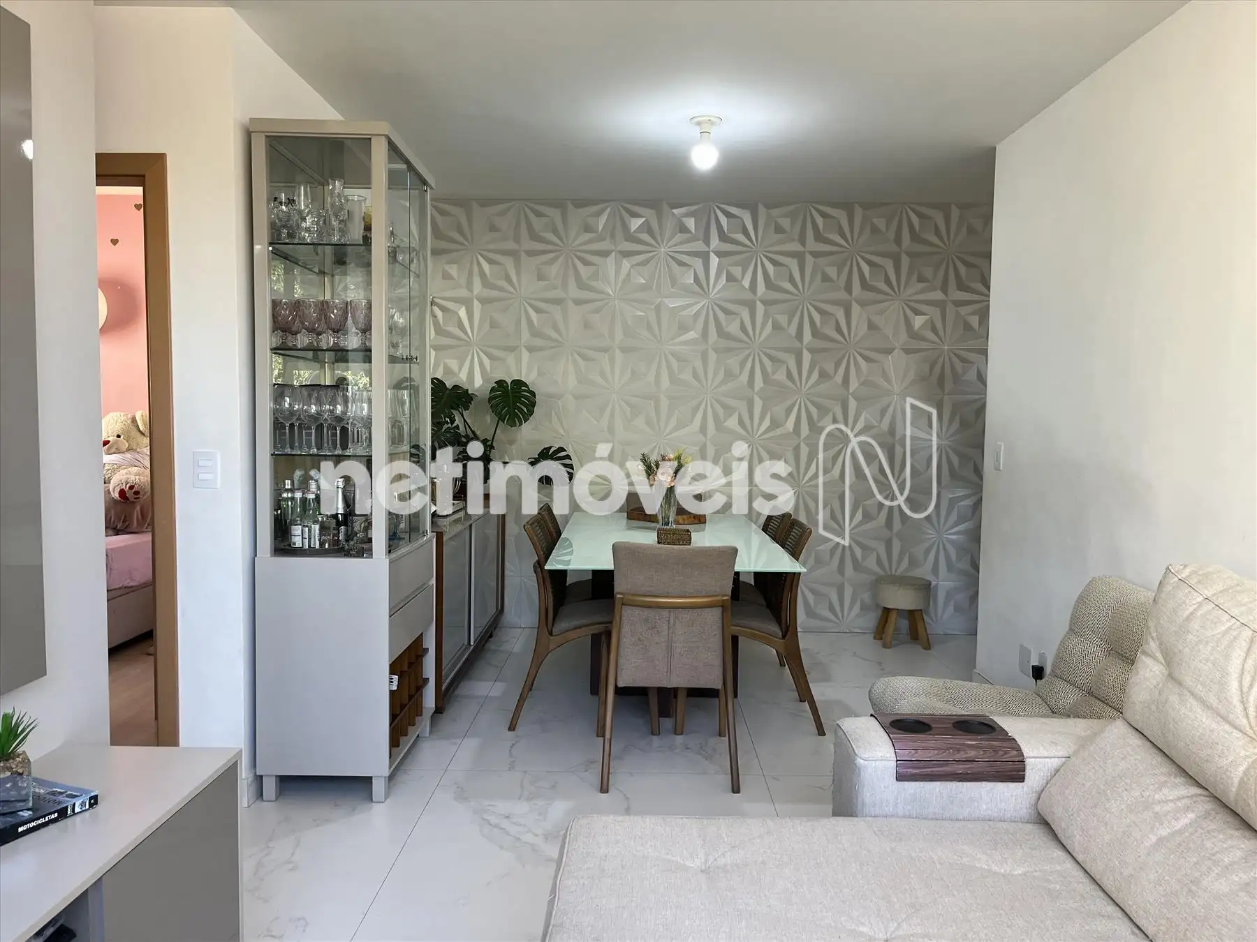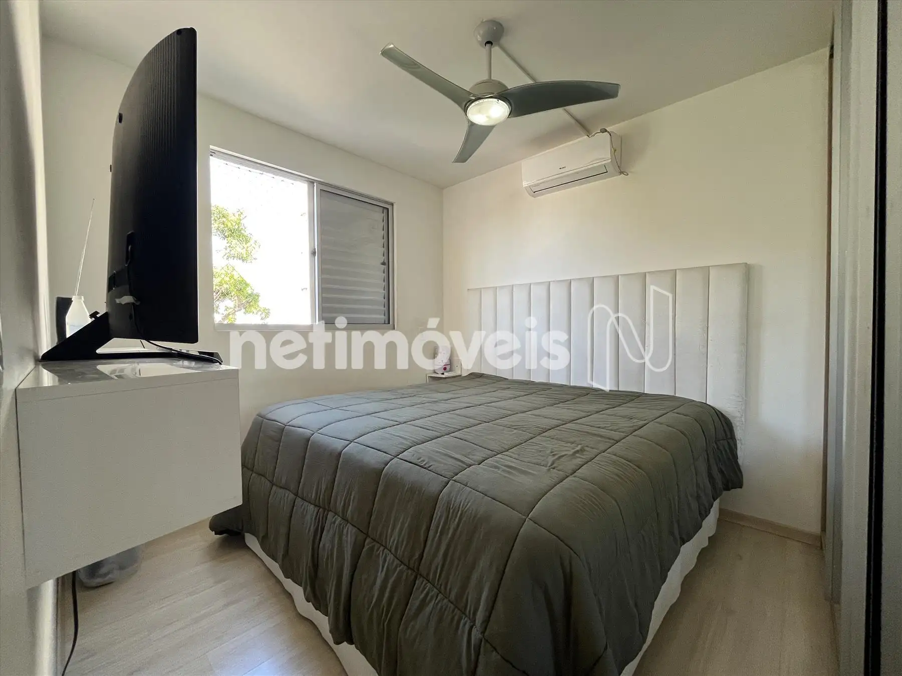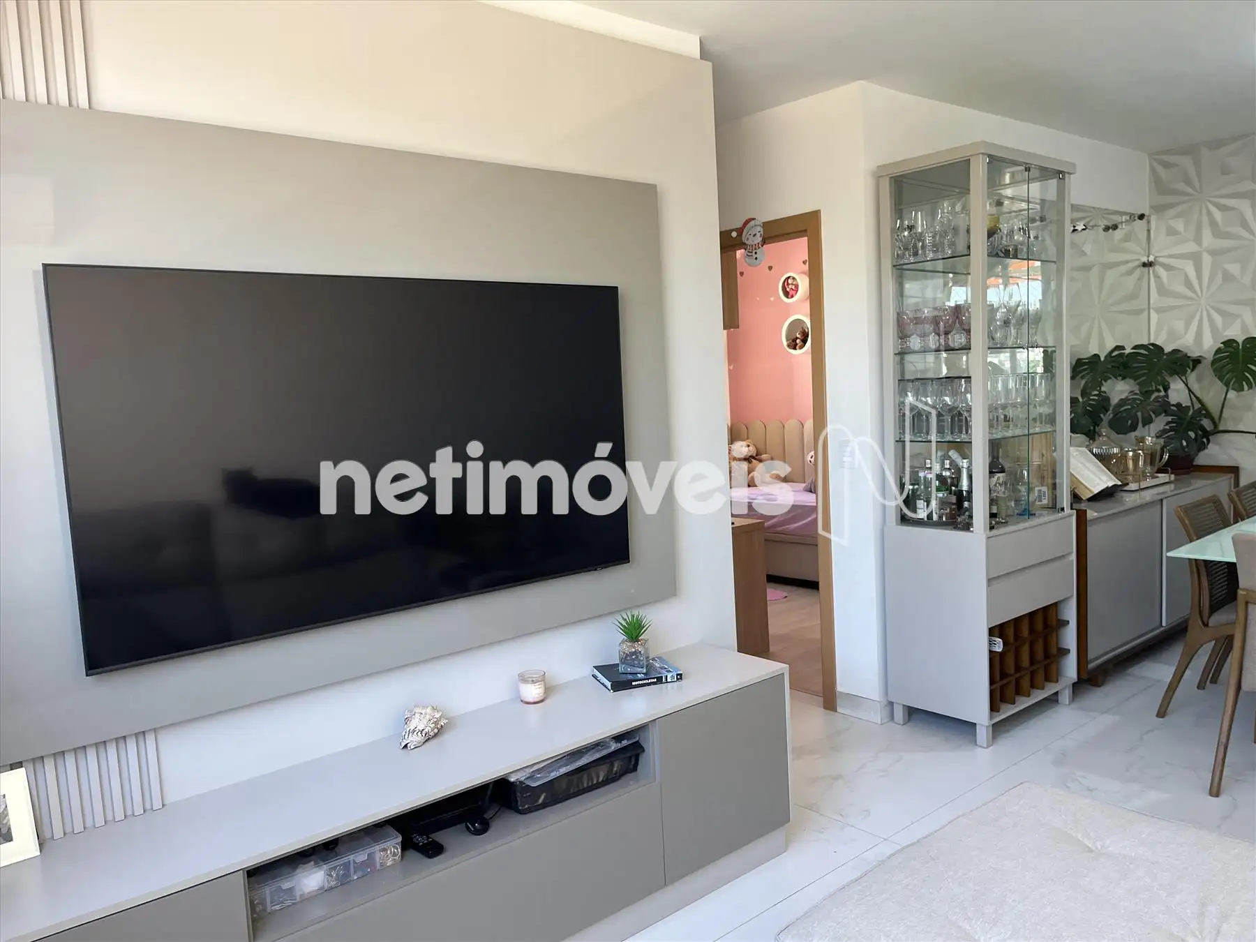 Apartamento: Sala para dois ambientes clara e arejado, com belíssima vista para Serra do Curral, piso em porcelanato, ar condicionado o painel de tv fica no imóvel;
