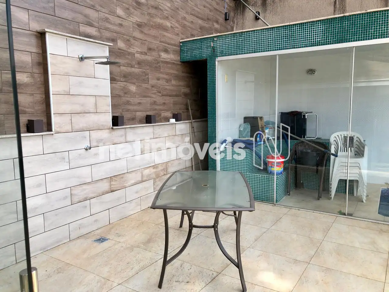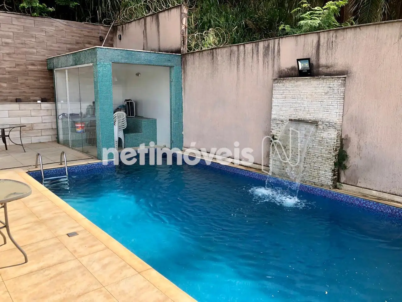 Na parte de trás da casa tem um excelente espaço Gourmet com piscina com cascata, sauna, churrasqueira e linda vista.
