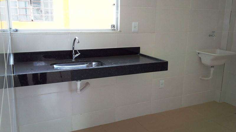 - Cozinha conjugada com área de serviço, janela blindex e bancada em granito.
