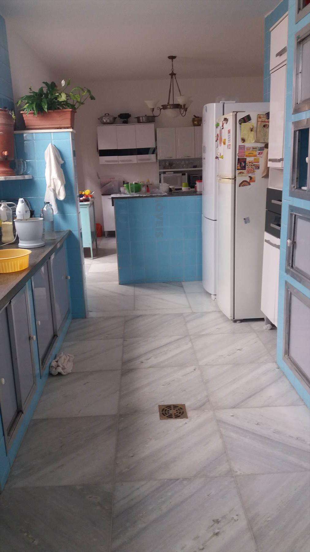 Cozinha ampla, clara e arejada estilo americana com copa, piso em mármore.