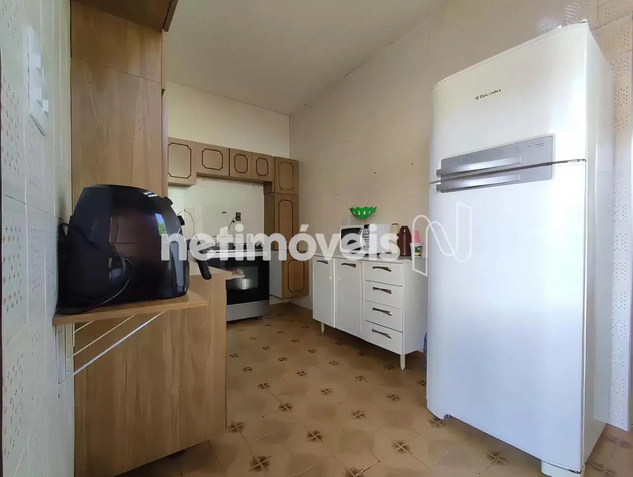 - Cozinha com armários, piso em cerâmica;