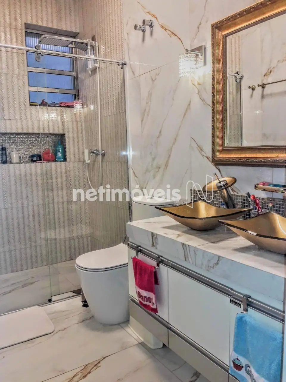 - Banho social e suíte com box em vidro temperado, bancadas em granito com duas pias, armário sob a pia, aquecimento solar nas torneiras e chuveiros, e vasos sanitários aquecidos.