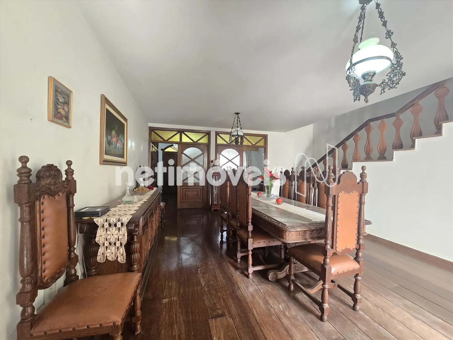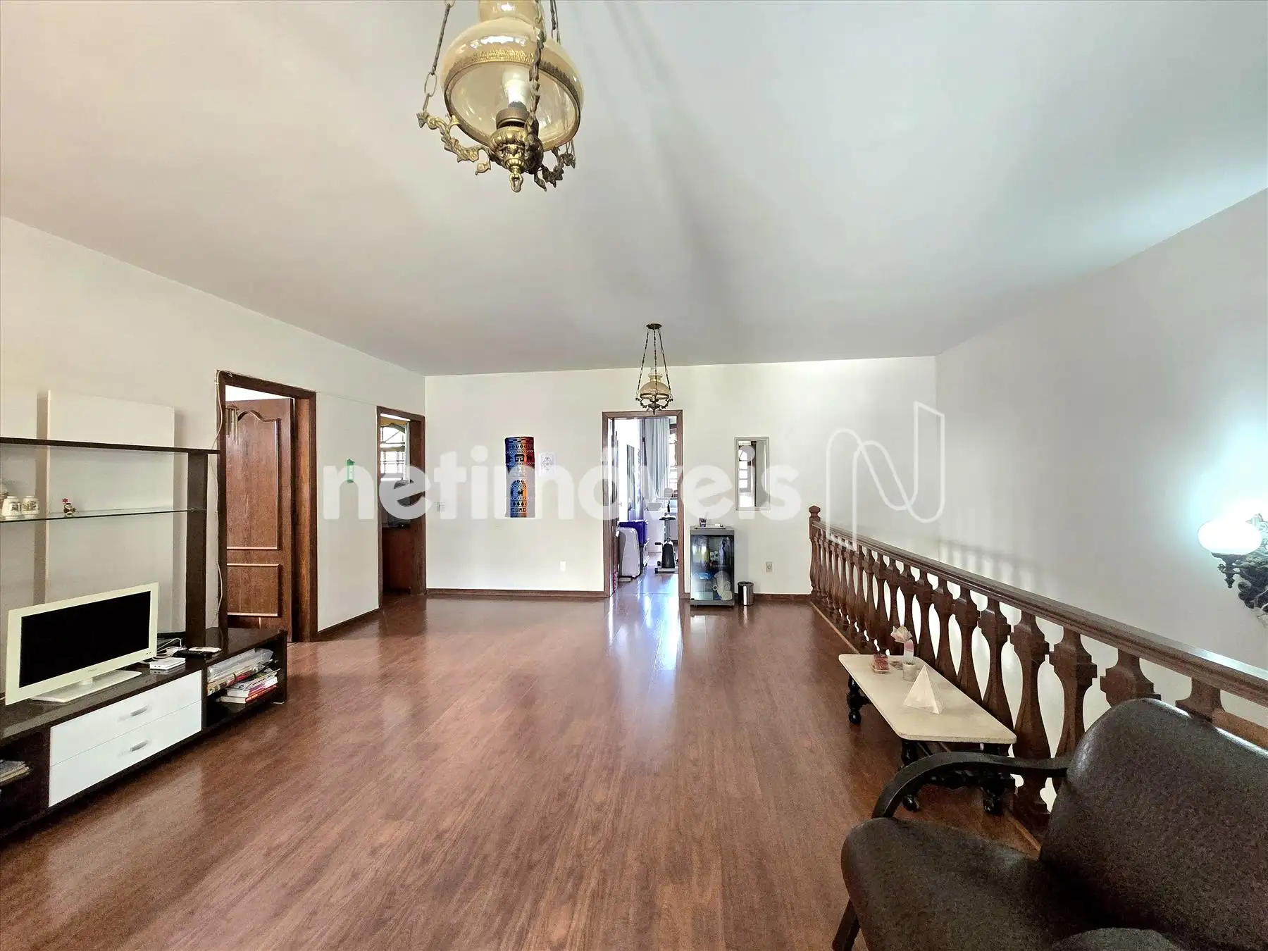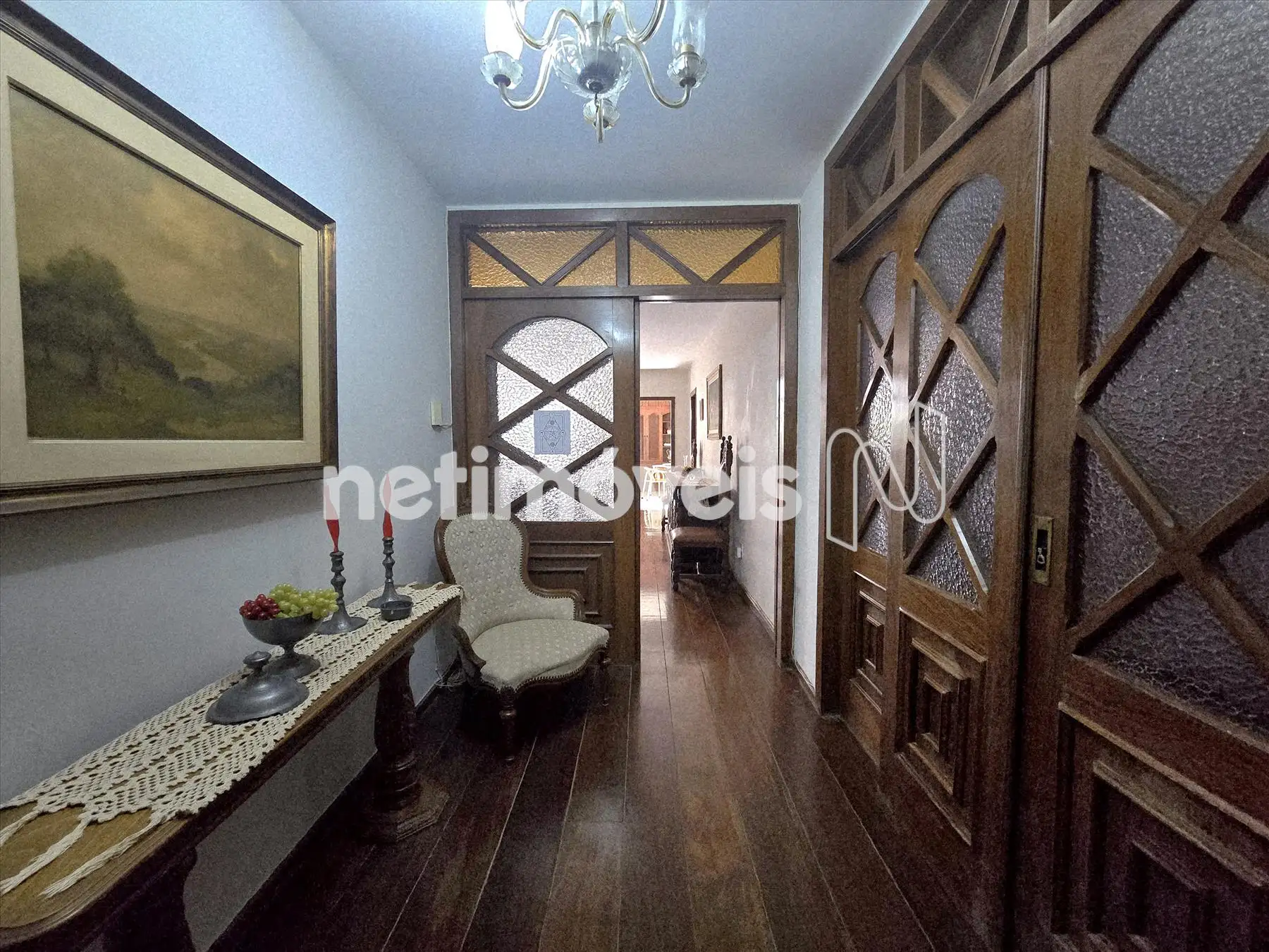 Amplo salão com varanda; 4 quartos (sendo 1 suíte) com piso em tábua corrida, janela em madeira com veneziana; banheiros com piso e parede em cerâmica, armários sob bancada em mármore e box (banho da suíte com banheira) ; Quintal amplo com piso em cerâmica que se estende para o fundo e laterais do imóvel; churrasqueira;