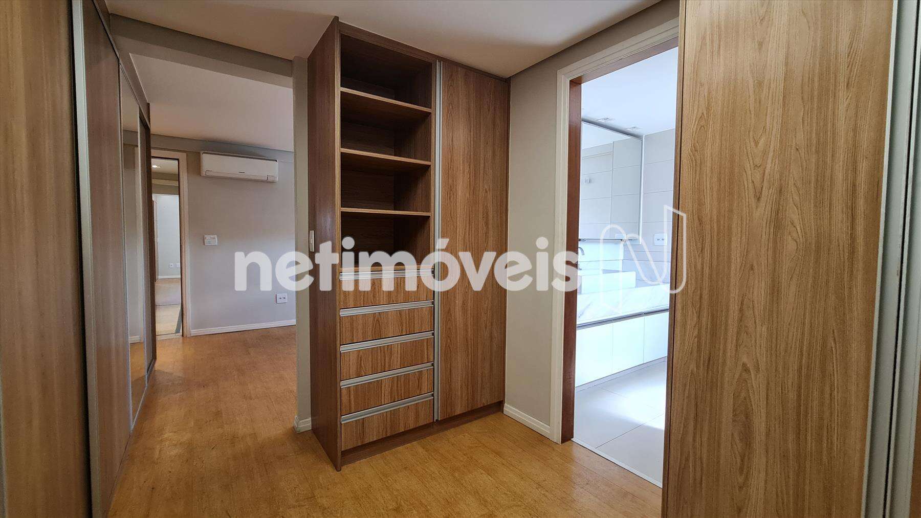 04 quartos sendo um deles transformado em closet da suíte principal, todos os quartos são suítes, com armários. Todos os cômodos possuem ar condicionado e janelas termo acústicas.