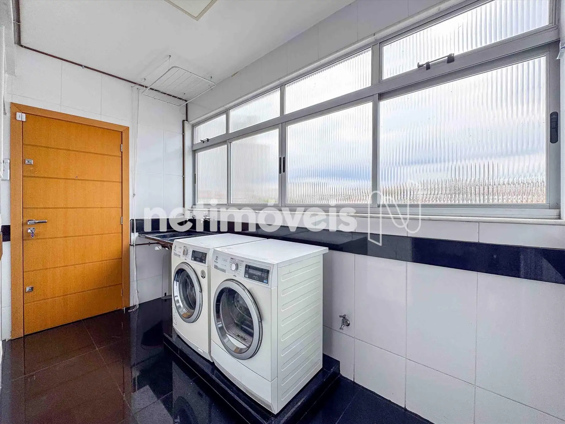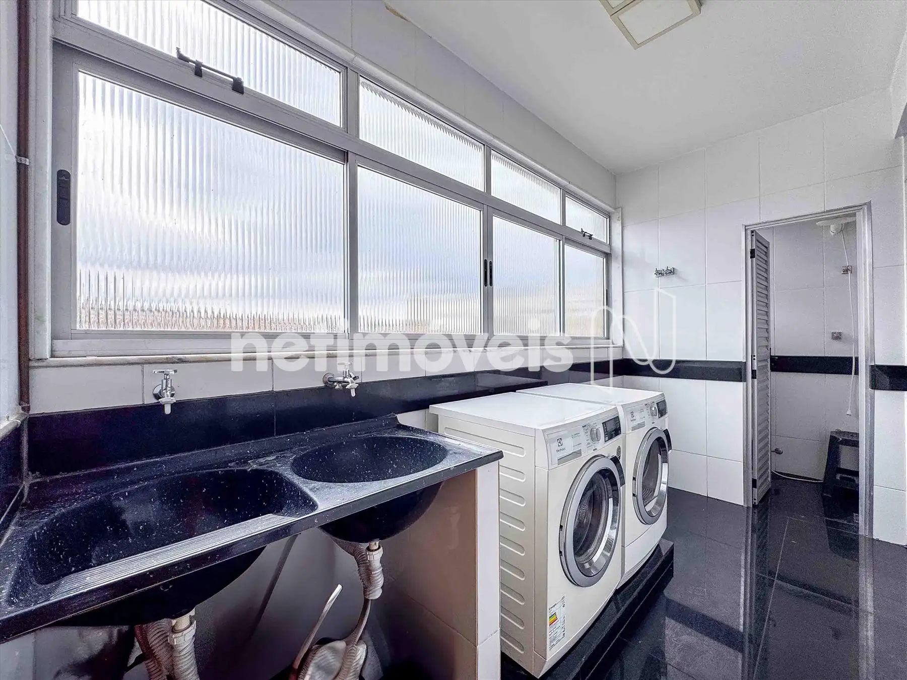 - Ampla área de lavanderia, com Tanque de bojo Duplo, independente espaçosa com bancada em granito preto com dois bojos de Inox, bem ventilada e sol da tarde;