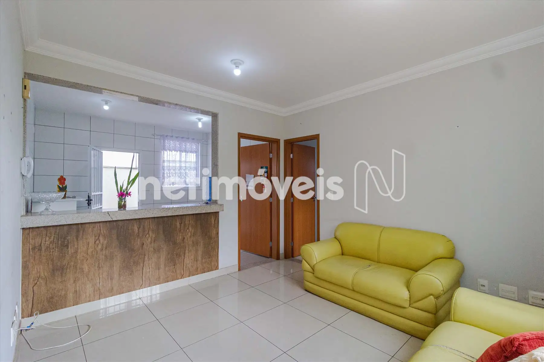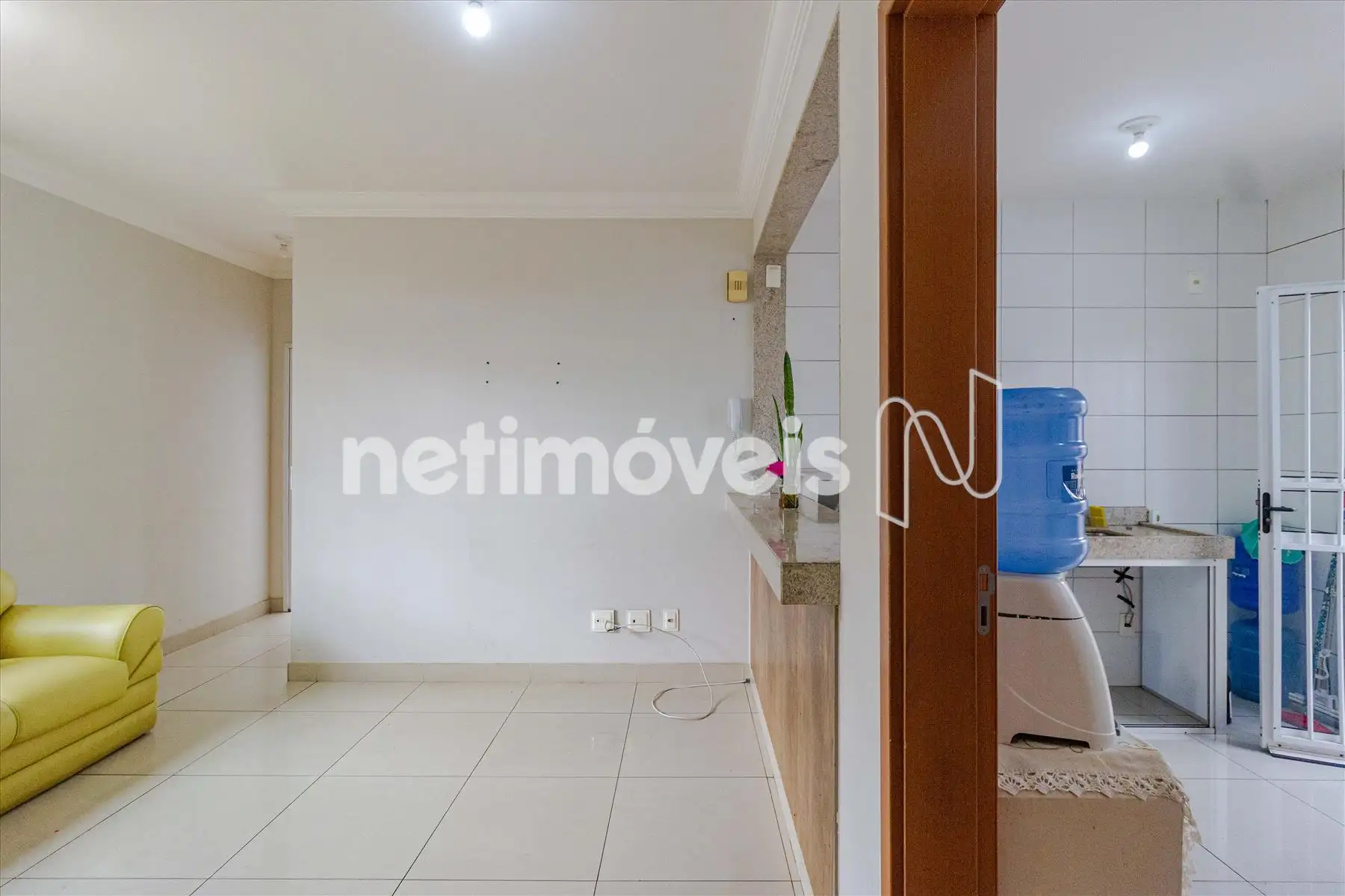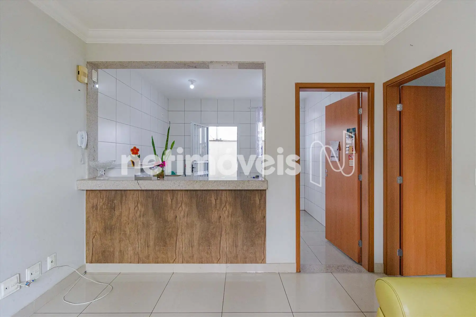 * 01 Sala para dois ambientes com cozinha integrada, piso porcelanato;