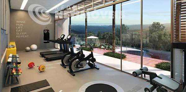 Área de lazer completa: piscina adulta com raia, piscina infantil, quadra poliesportiva, quadra de tênis com piso saibro, espaço gourmet, sauna, SPA e espaço fitness.