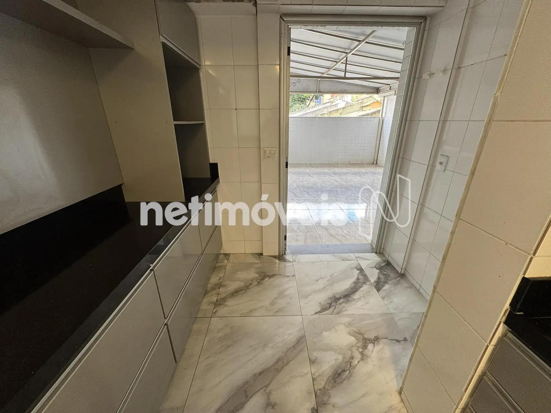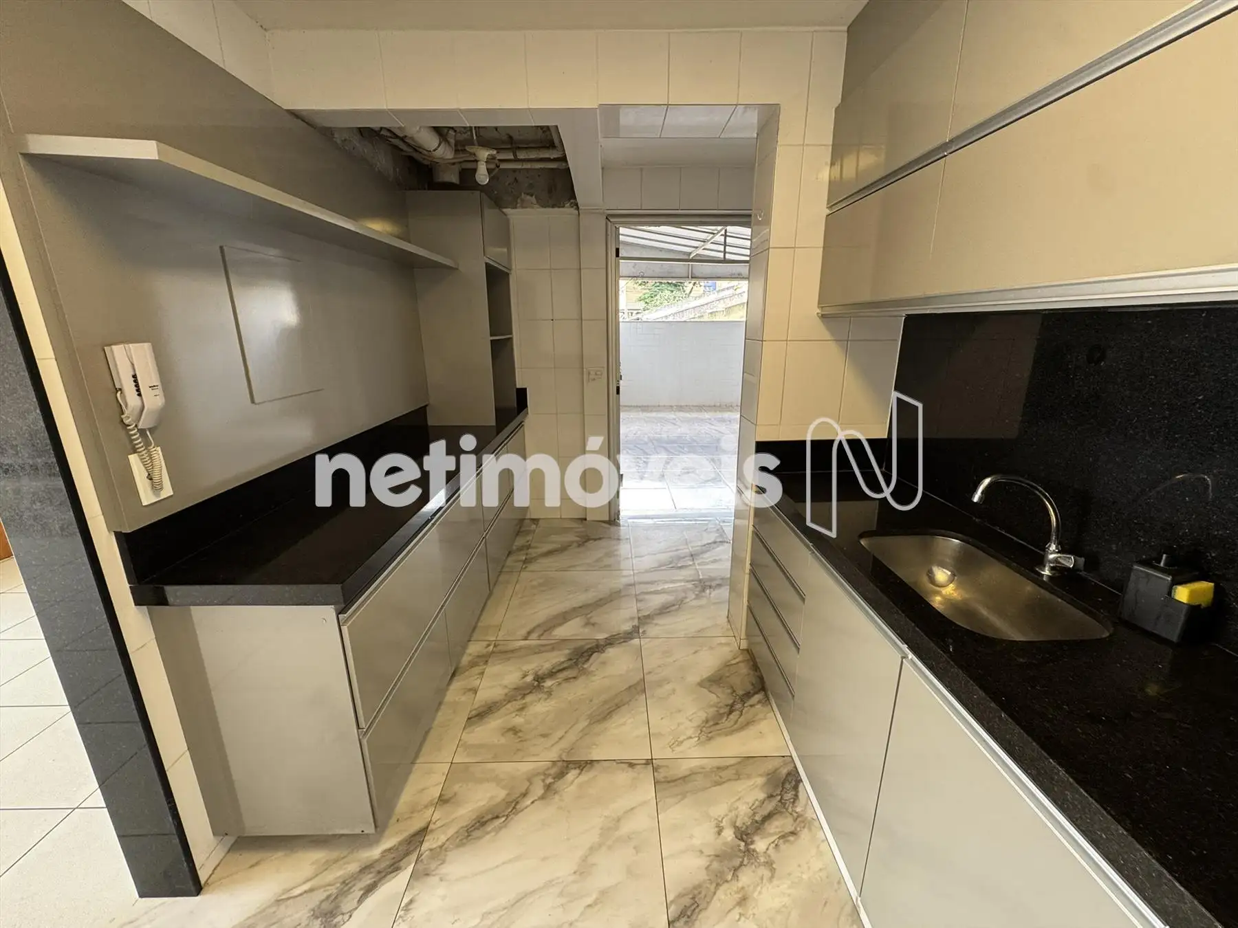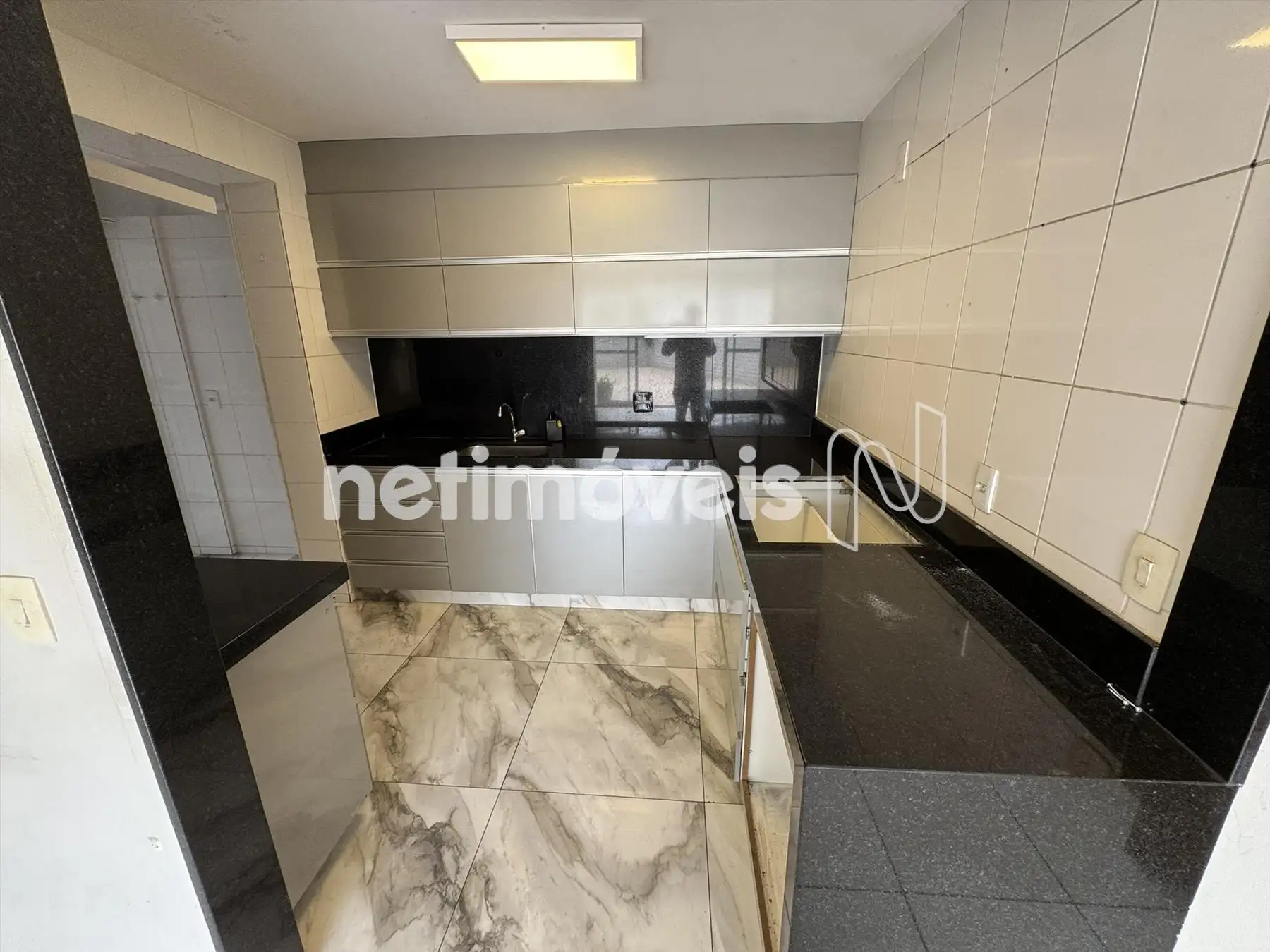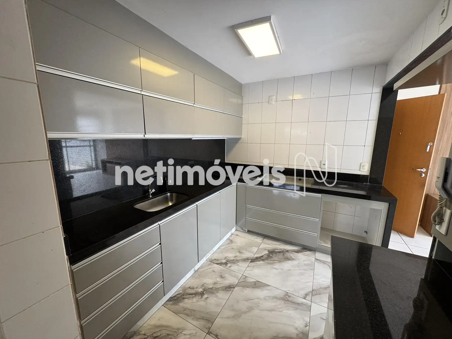 Cozinha com armários planejados e bancada em granito.