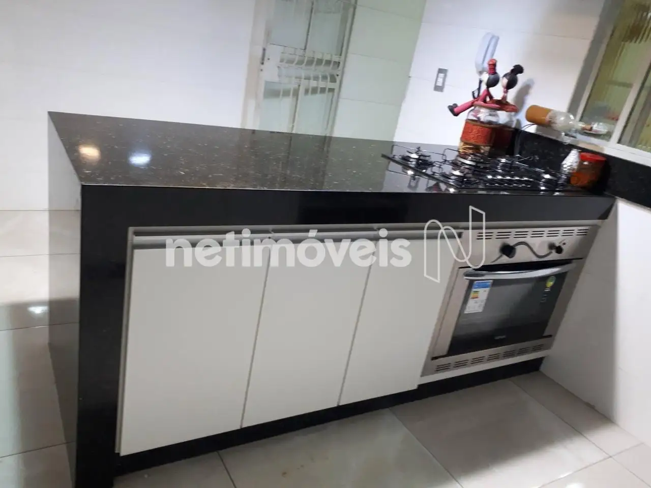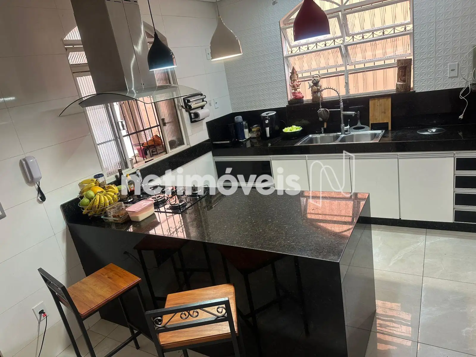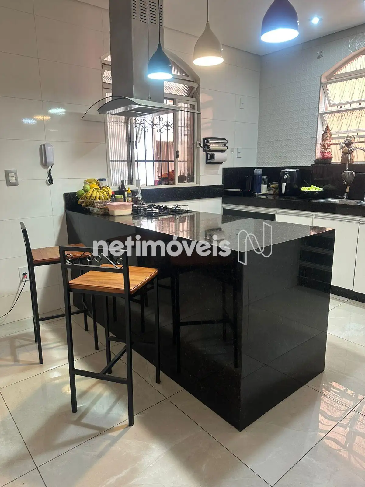 01 cozinha americana de muito bom gosto com acabamento em granito.
