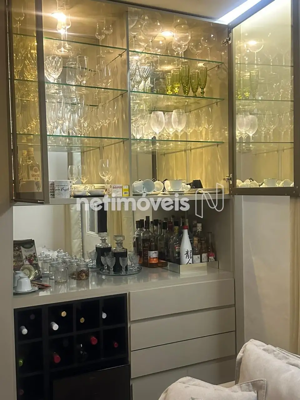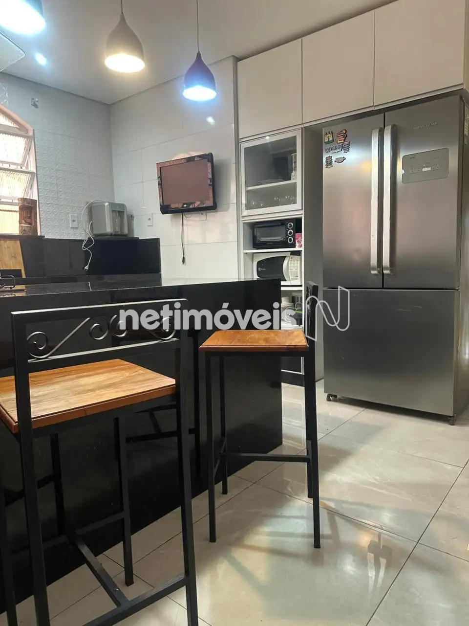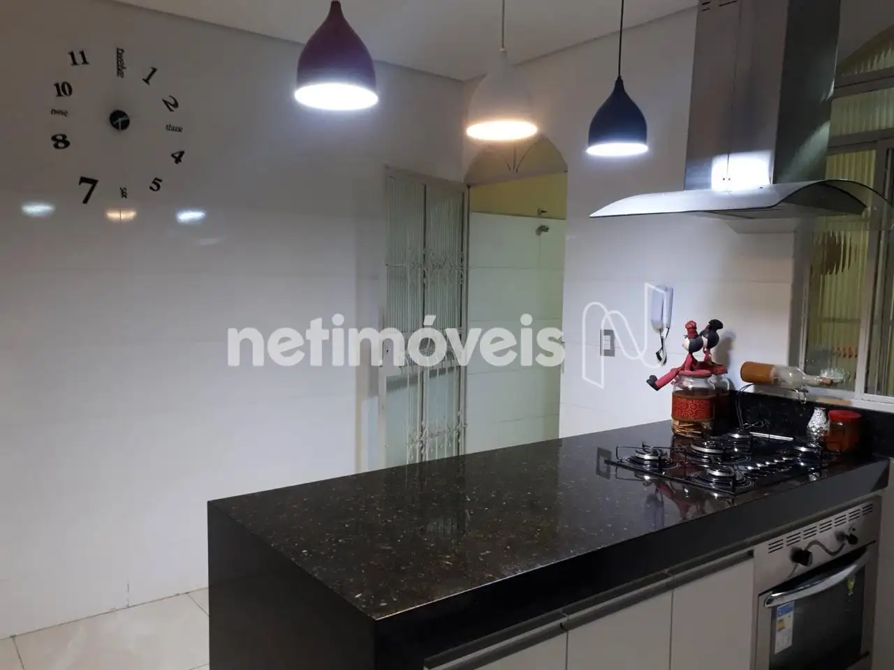 01 cozinha americana de muito bom gosto com acabamento em granito.