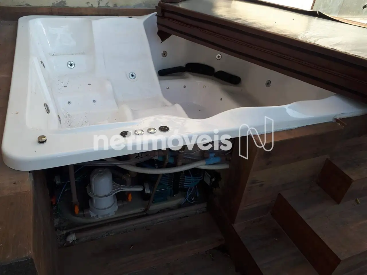 Neste espaço possui uma banheira de hidromassagem para oito pessoas semi nova.