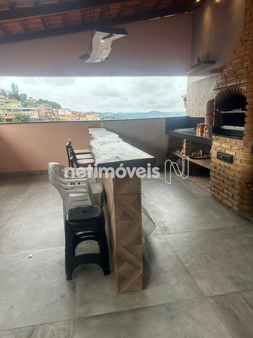 Terceiro piso possui um espaço gourmet com churrasqueira,com acabamento em madeira de demoliçao e uma vista impar para pôr do sol.