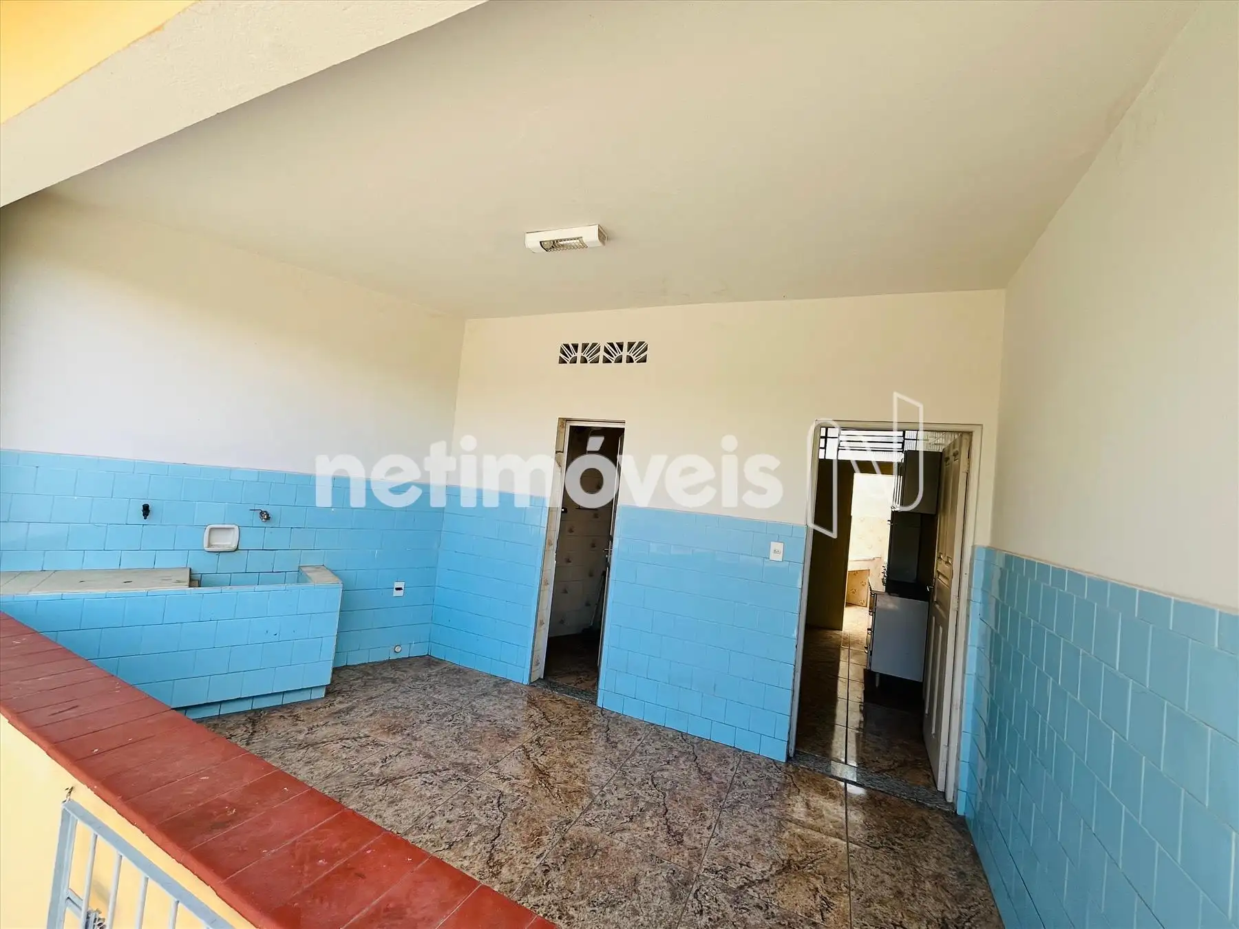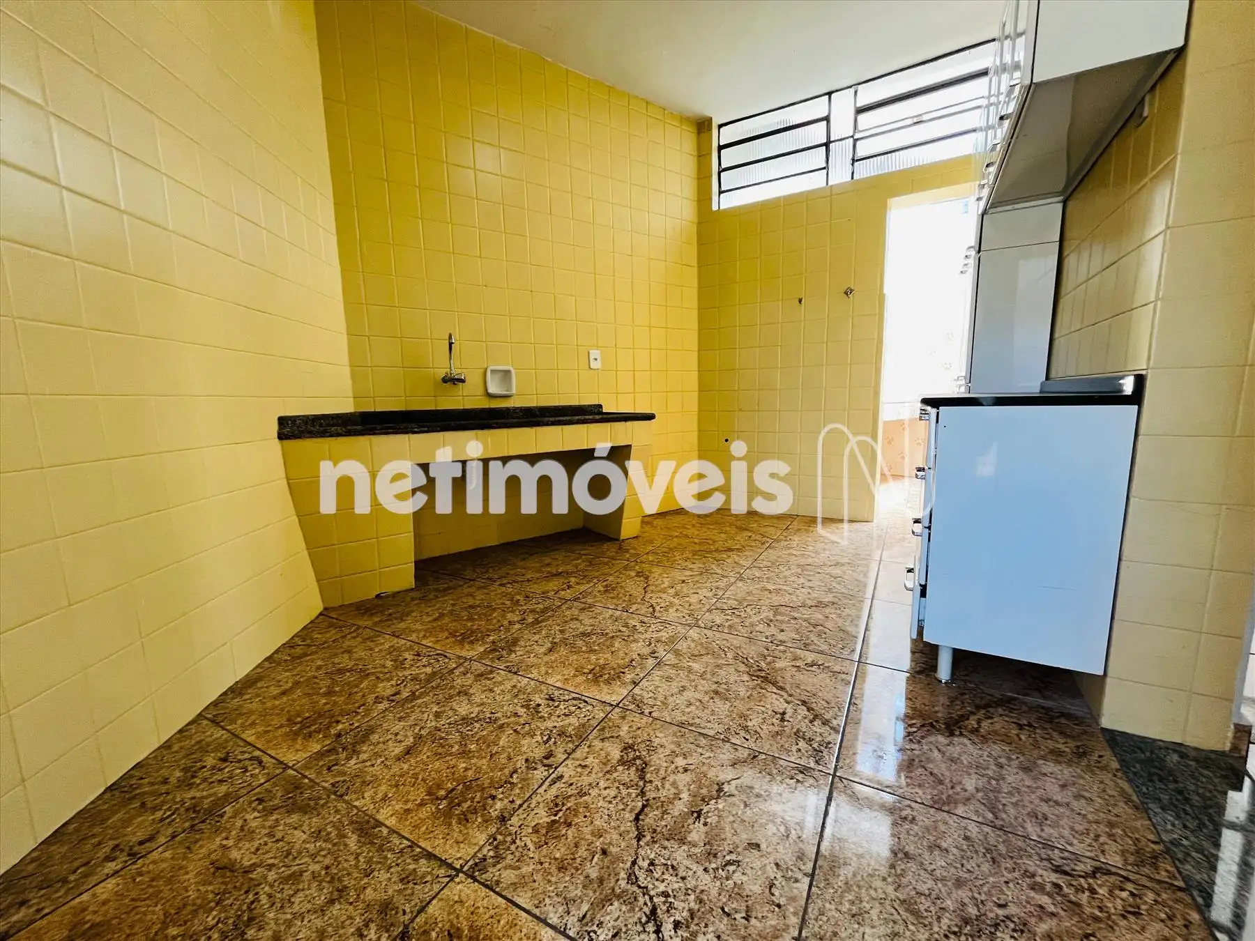 •Cozinha grande com revestimento até o teto;