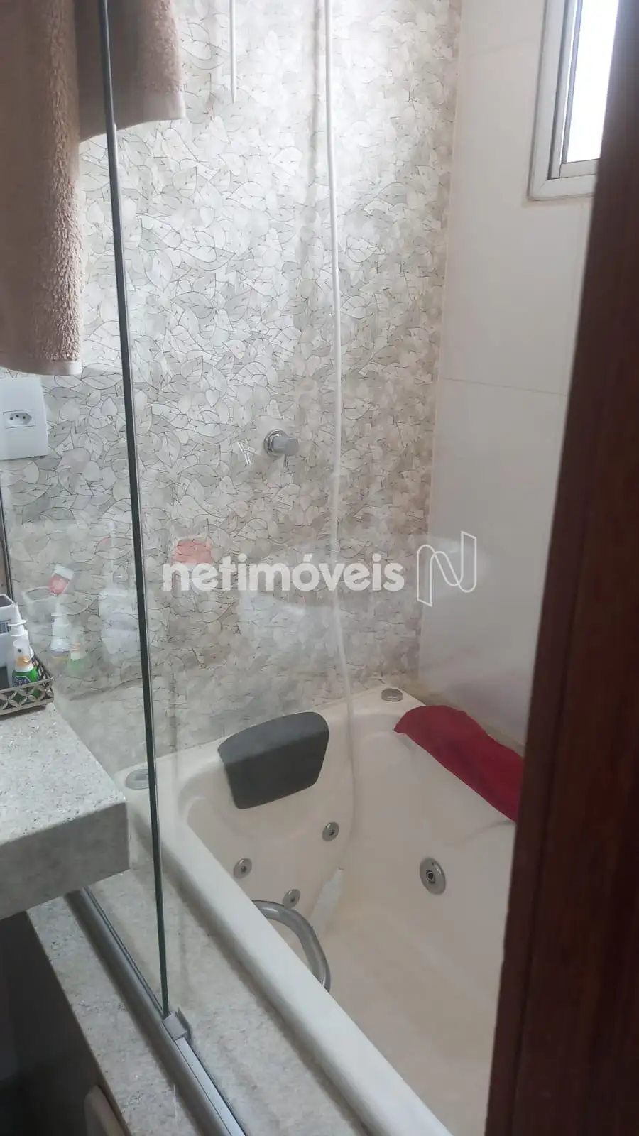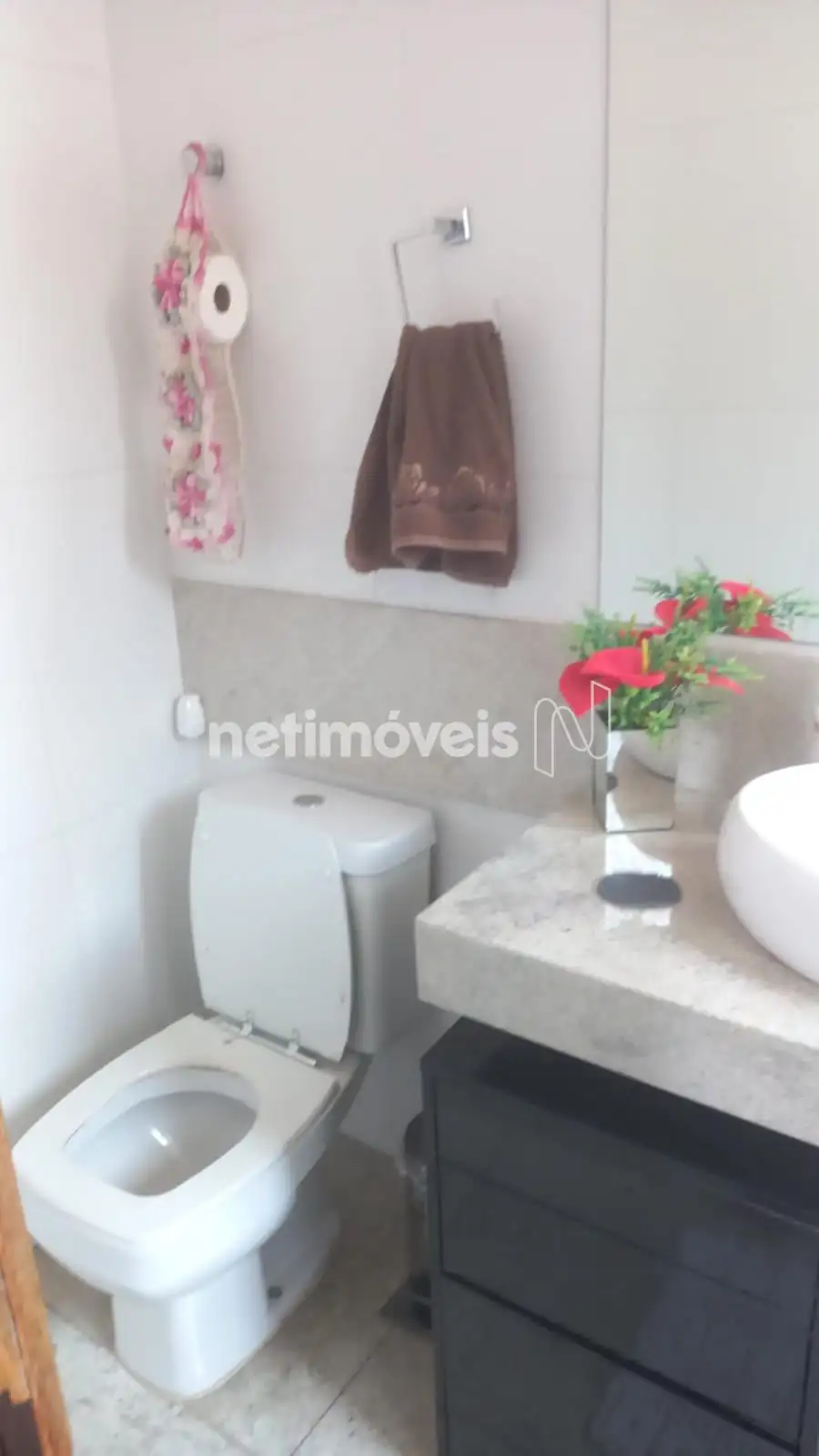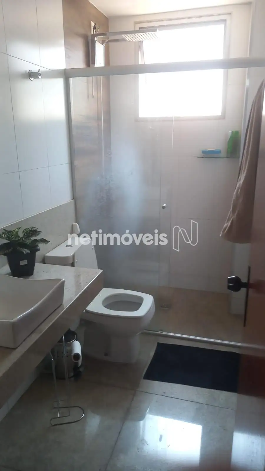 . Banho social, com bancada em granito, box em blindex, piso e paredes em cerâmica;