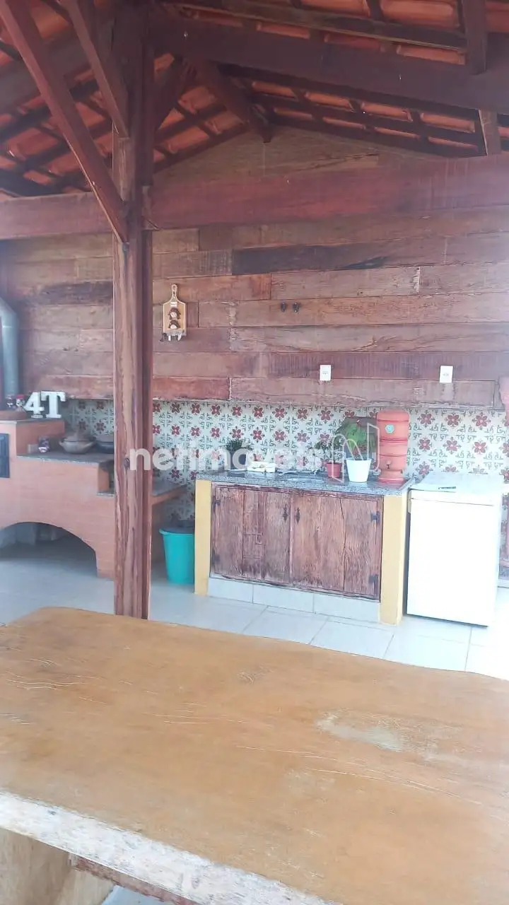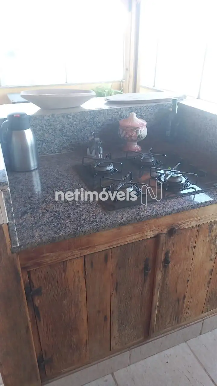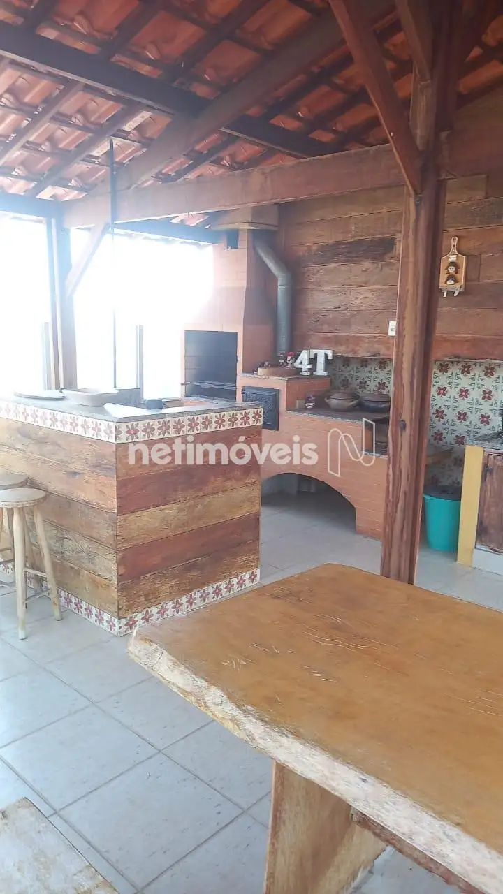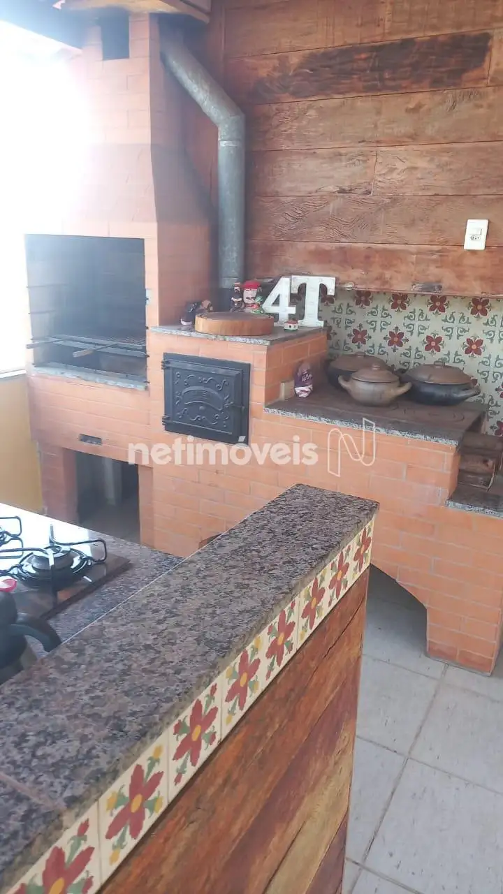 . Área livre, fogão à lenha com churrasqueira, bancada com pia.
