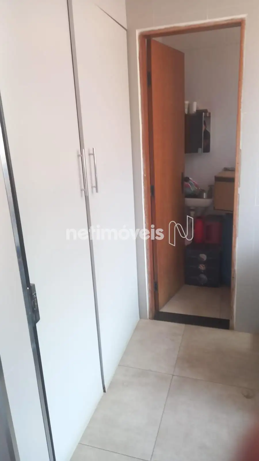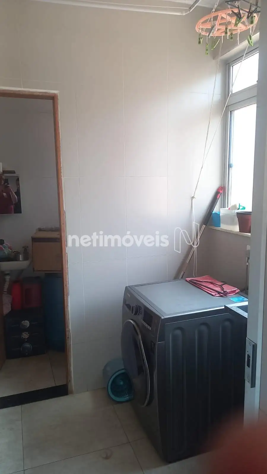 . Área de serviço separada com Armário, piso e paredes em cerâmica e banheiro;
