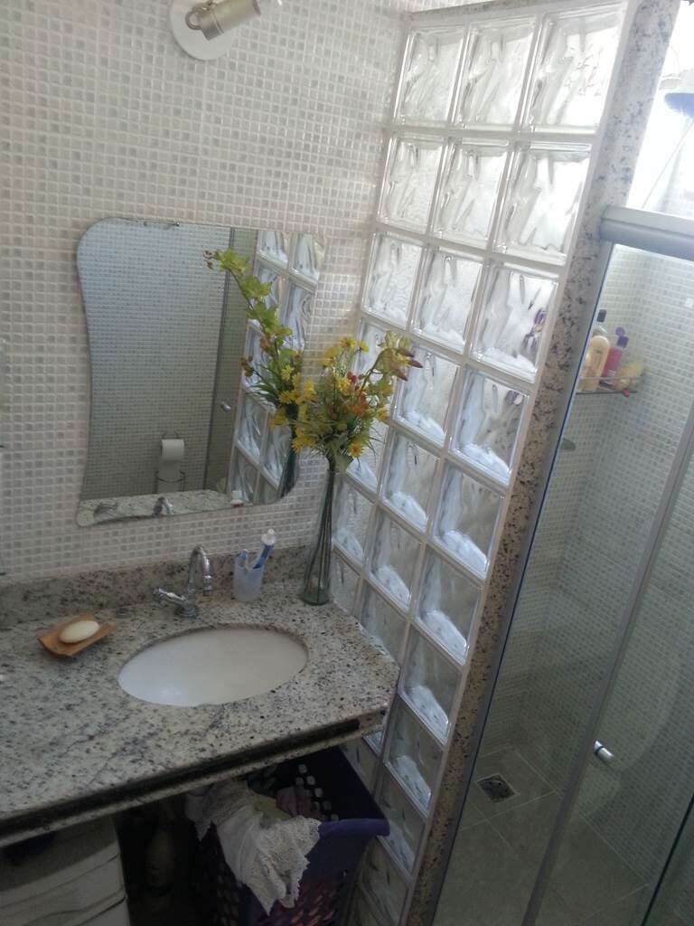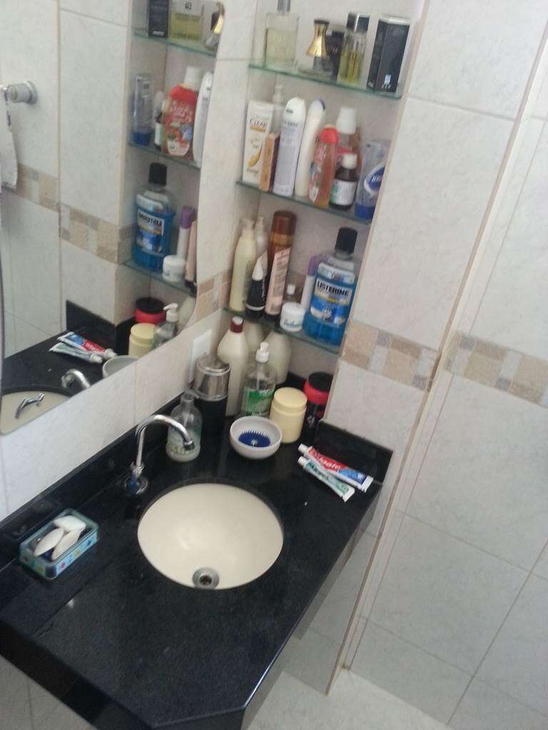 . Lavabo, piso e paredes em cerâmica, bancada em granito;