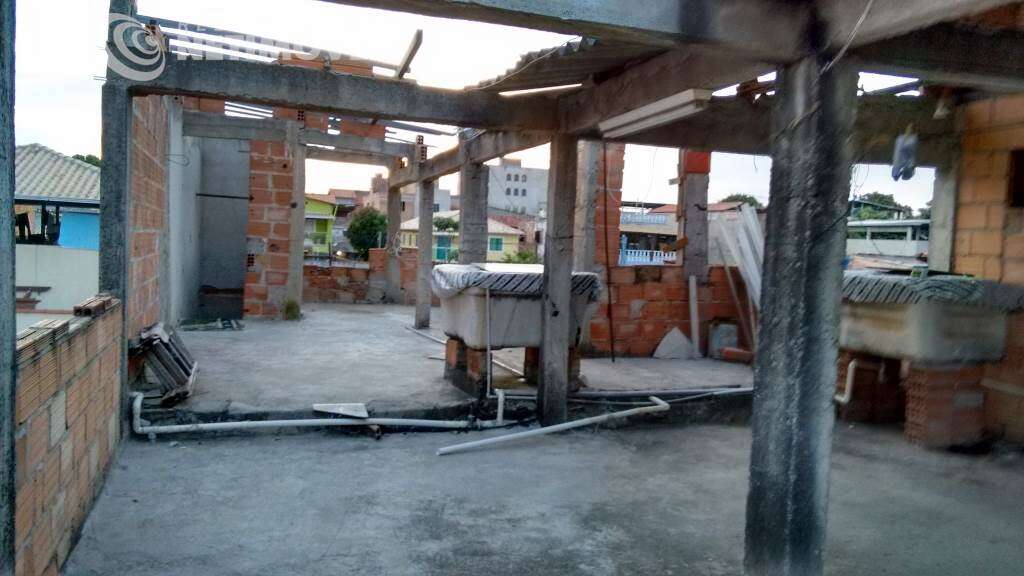 - 01 quarto com piso grosso e estrutura para suíte, janela de estrutura de ferro e vidro liso;