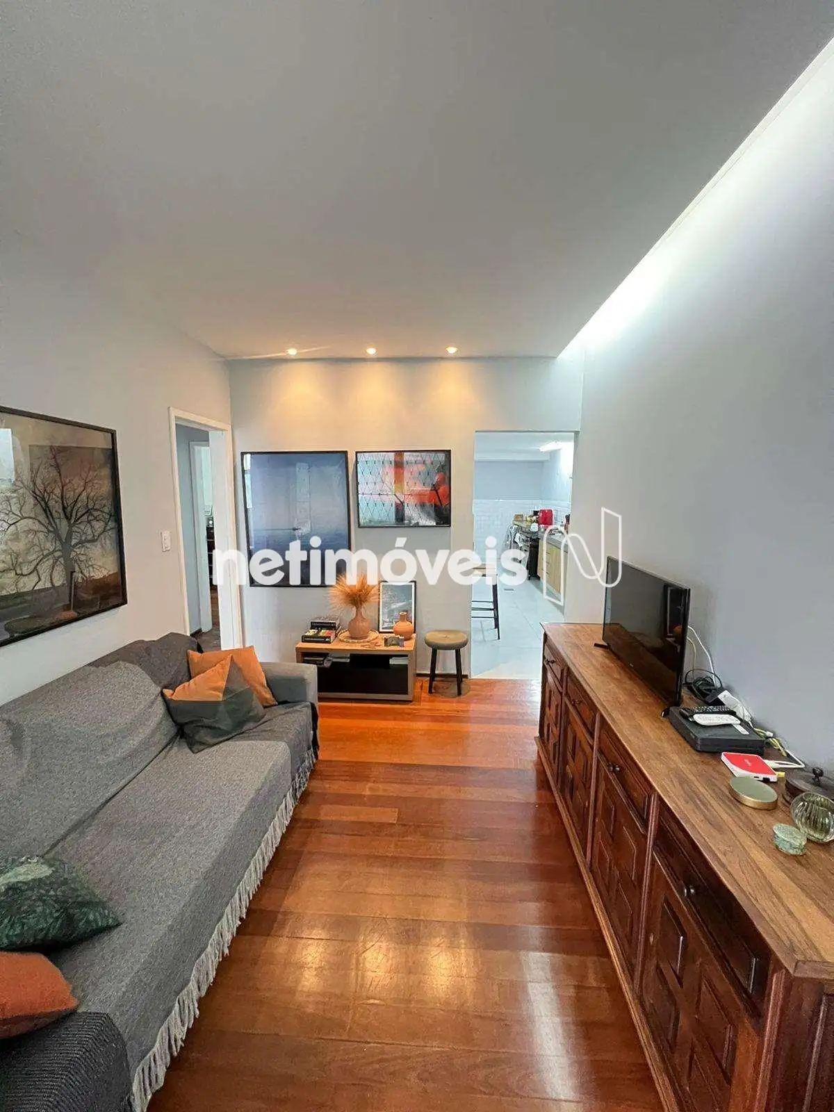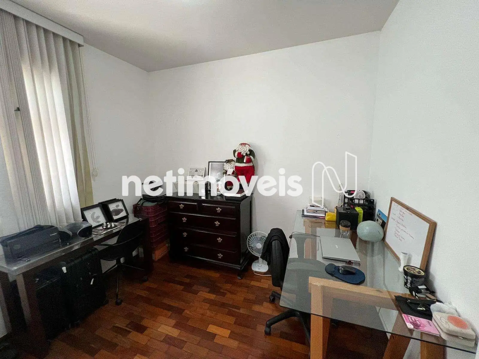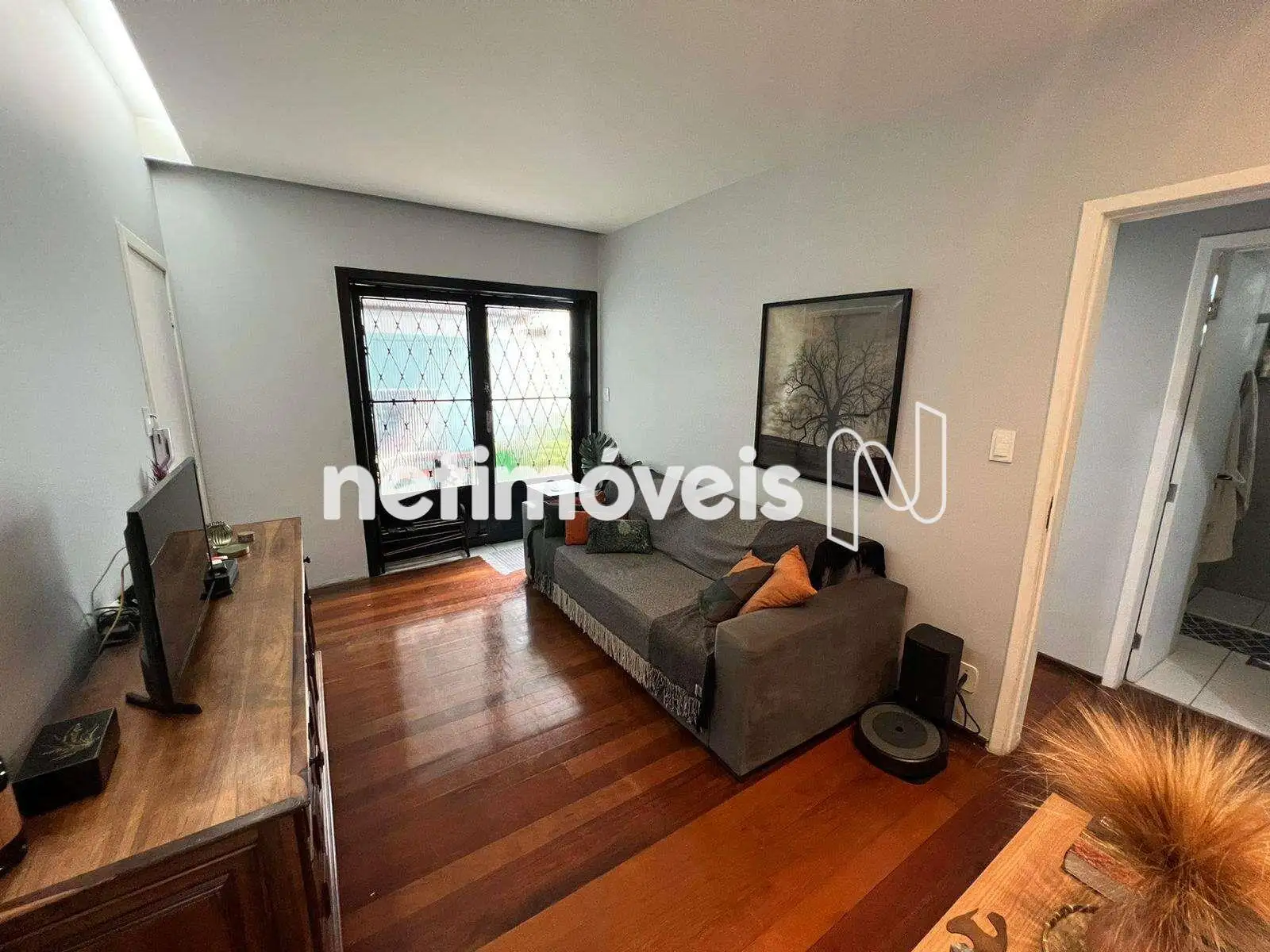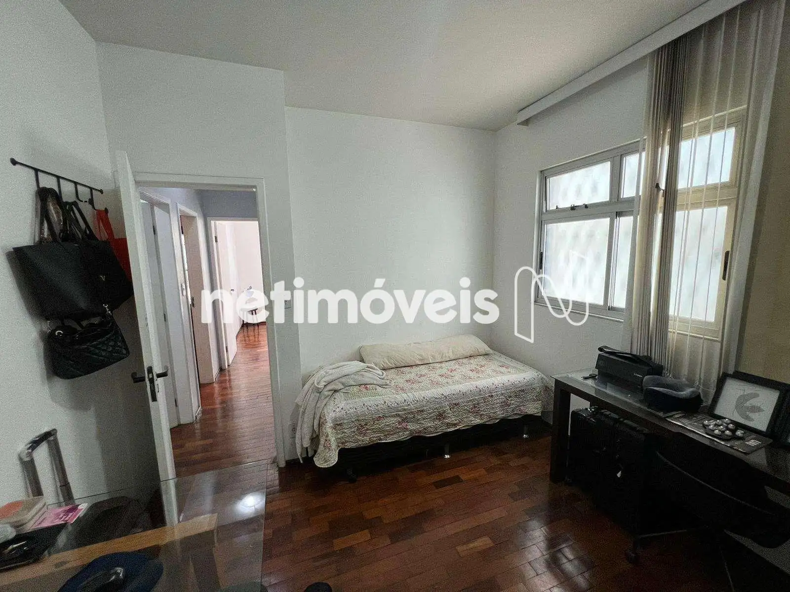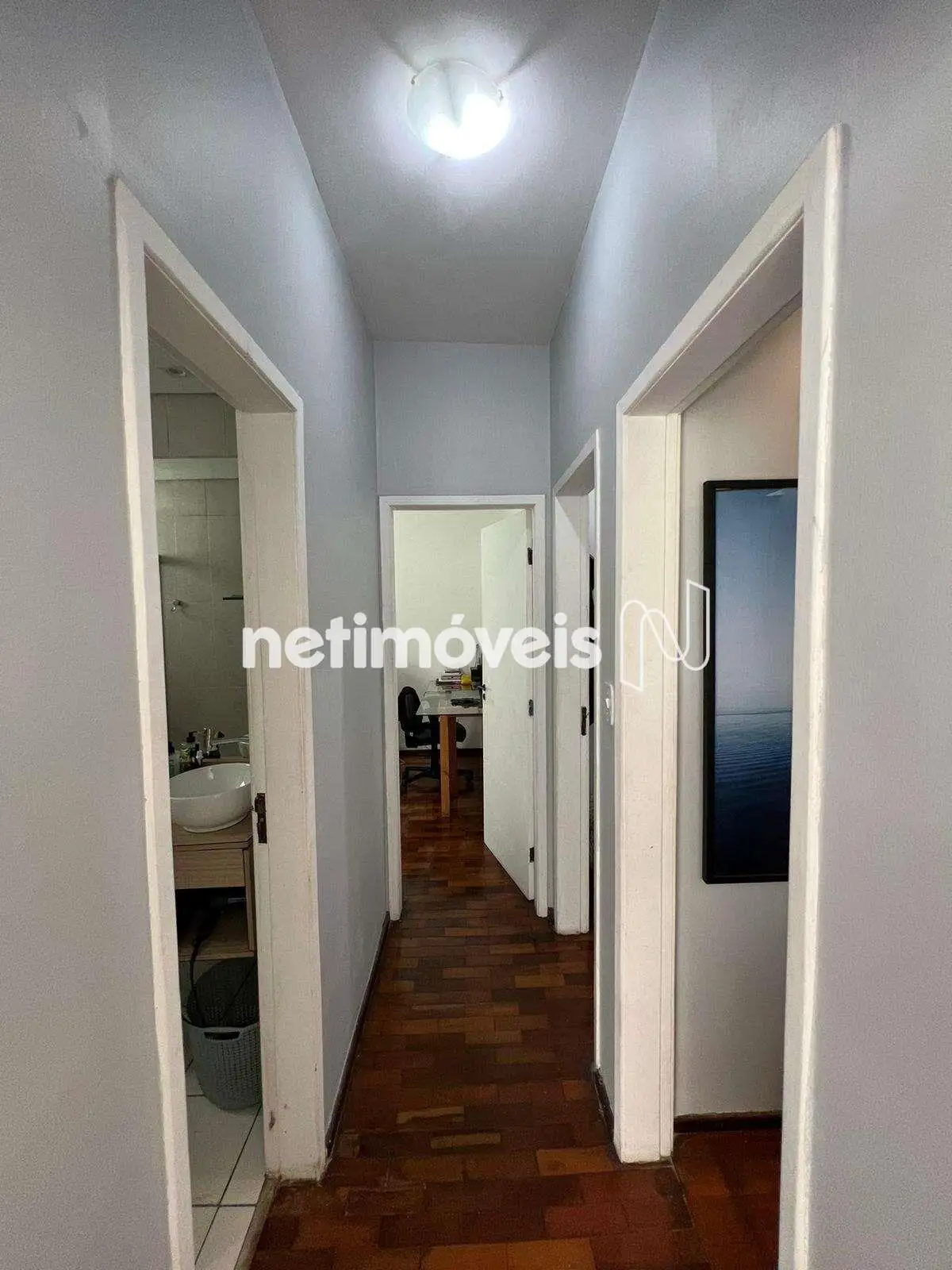 Piso em tábua corrida na sala e taco nos quartos.