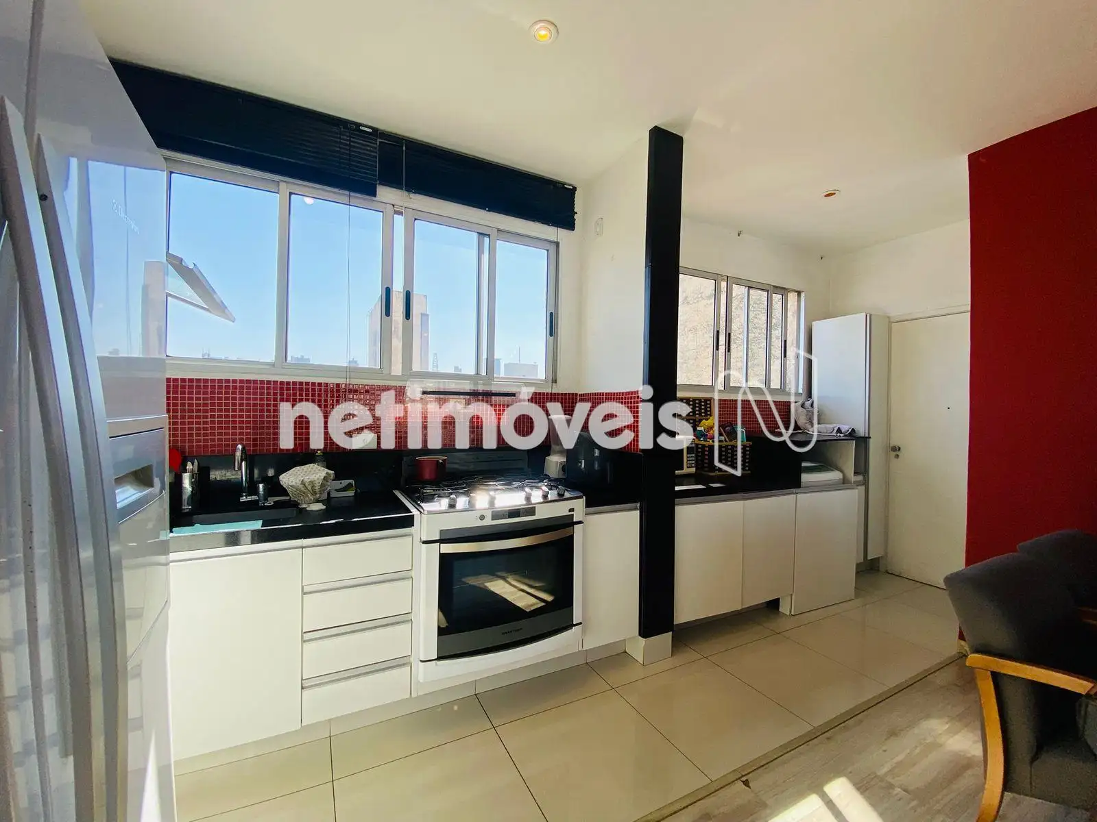 - Cozinha em conceito aberto, com armários planejados e bancadas em granito.