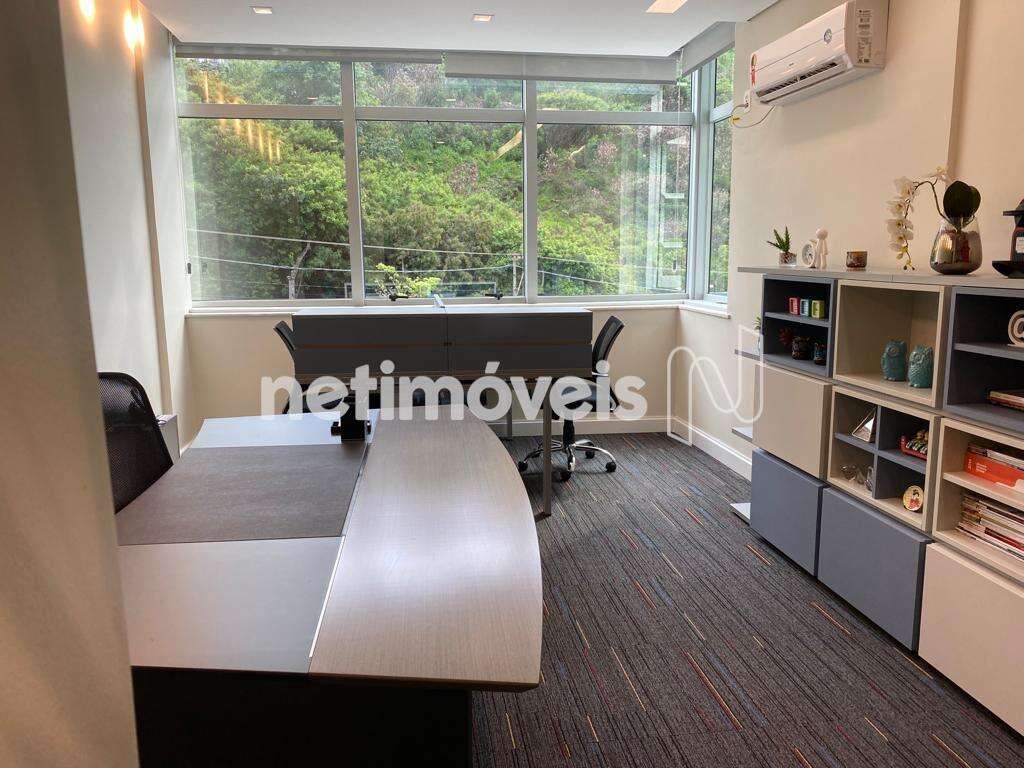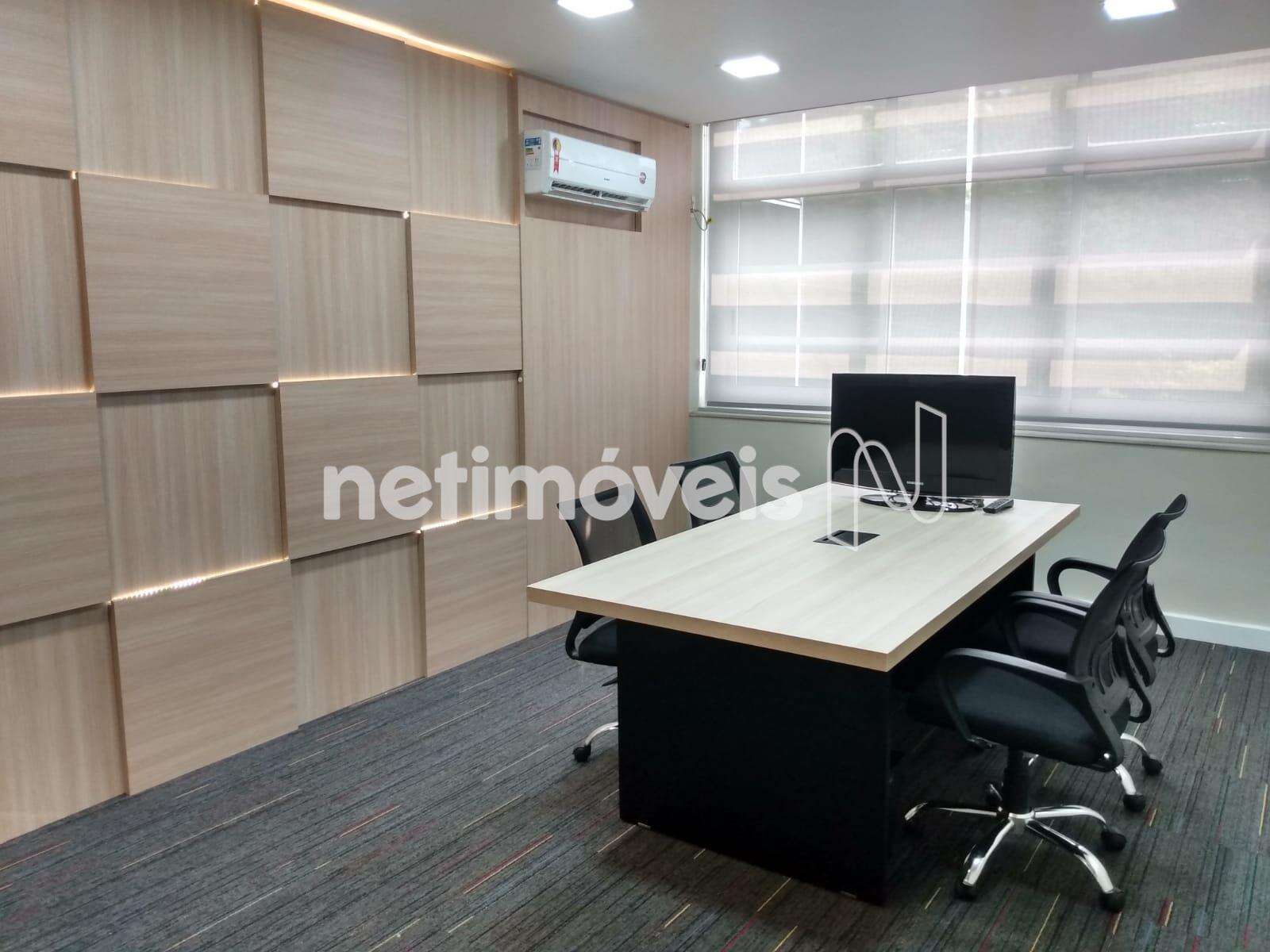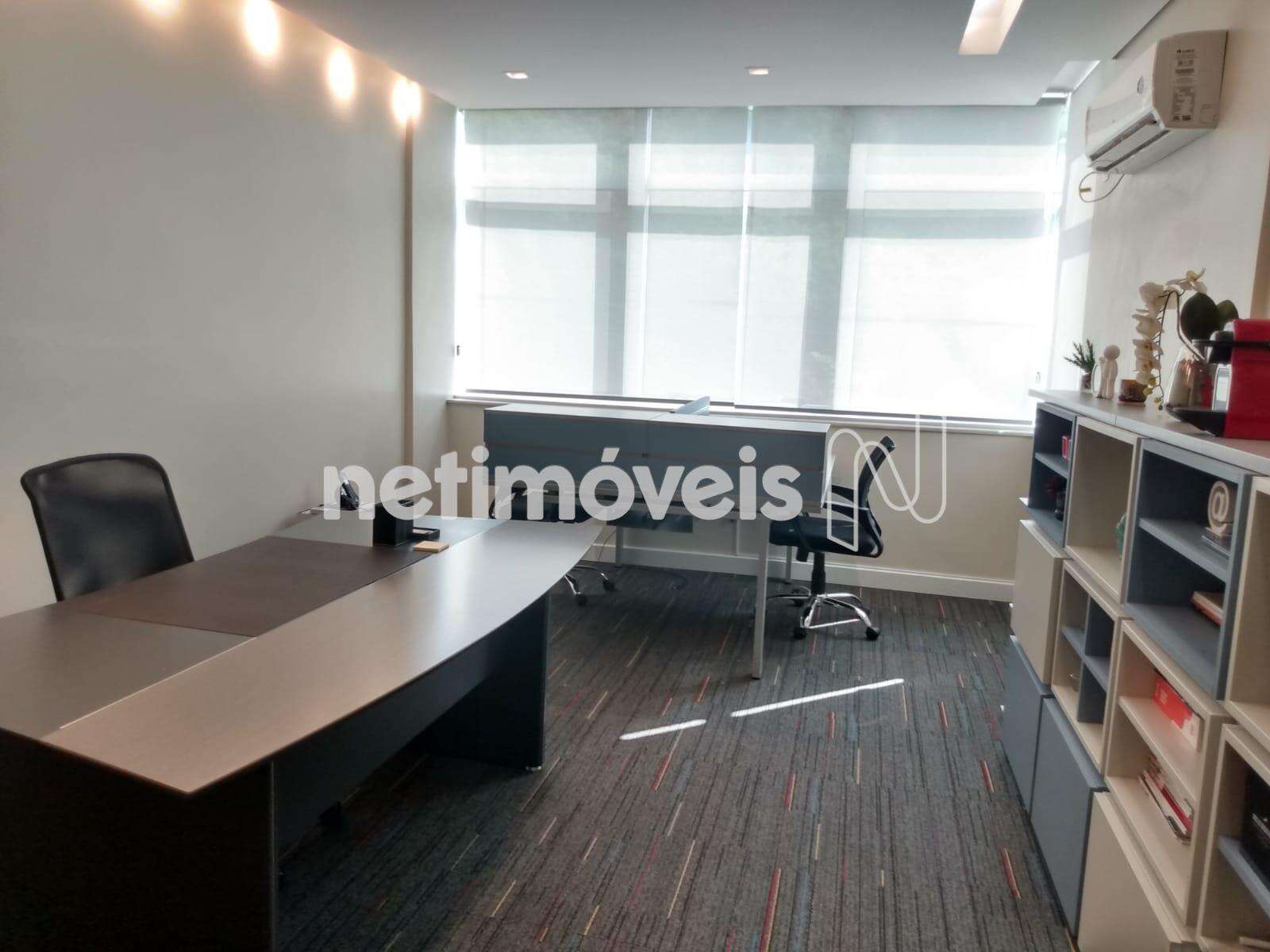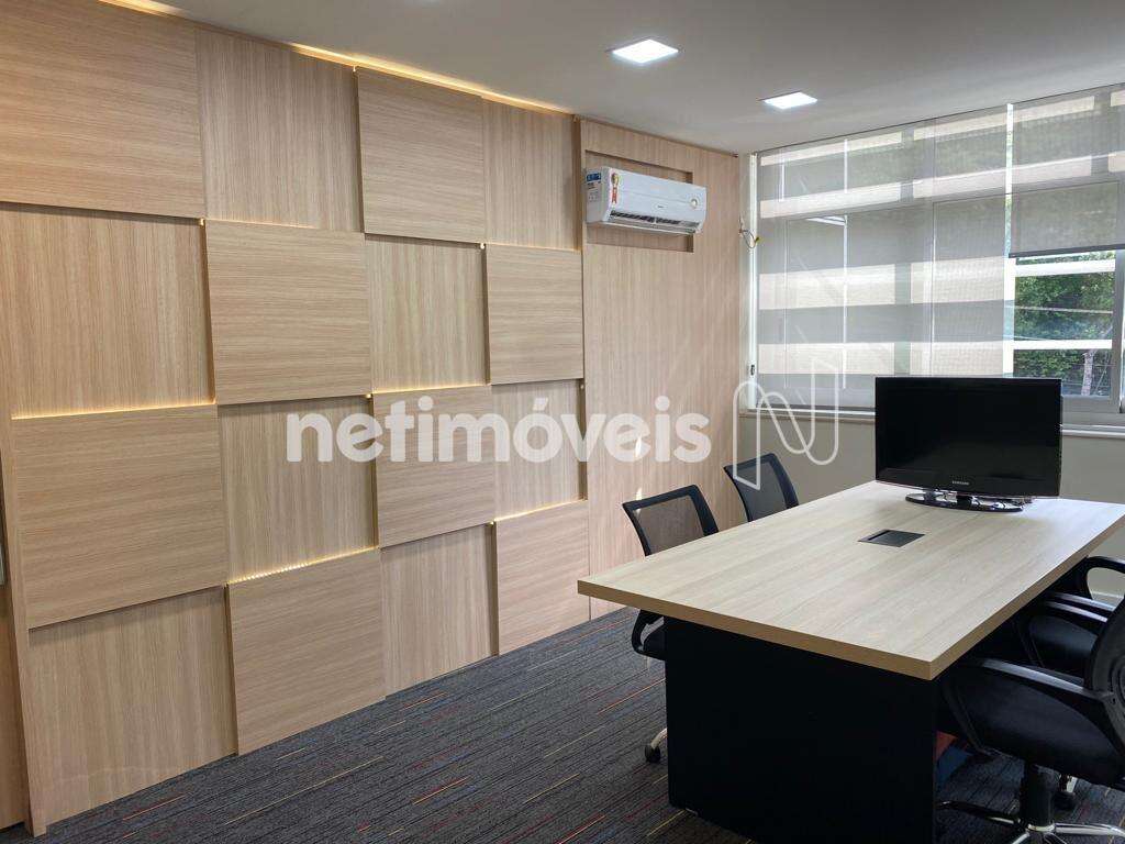 Conjunto de salas composta por 02 salas de alto padrão (cada sala tem aproximadamente 32m² e banheiros exclusivos) mais espaço para recepção. Salas decoradas com armários planejados feitos sob medida, conjunto de mesas (1 mesa presidente, 2 mesas baia e 1 mesa de reunião 6 pessoas), 6 cadeiras, iluminação de teto, rebaixamento em gesso, ar condicionado nas duas salas, carpete moderno, painel em madeira com led embutido. Linda! Muito bom gosto.