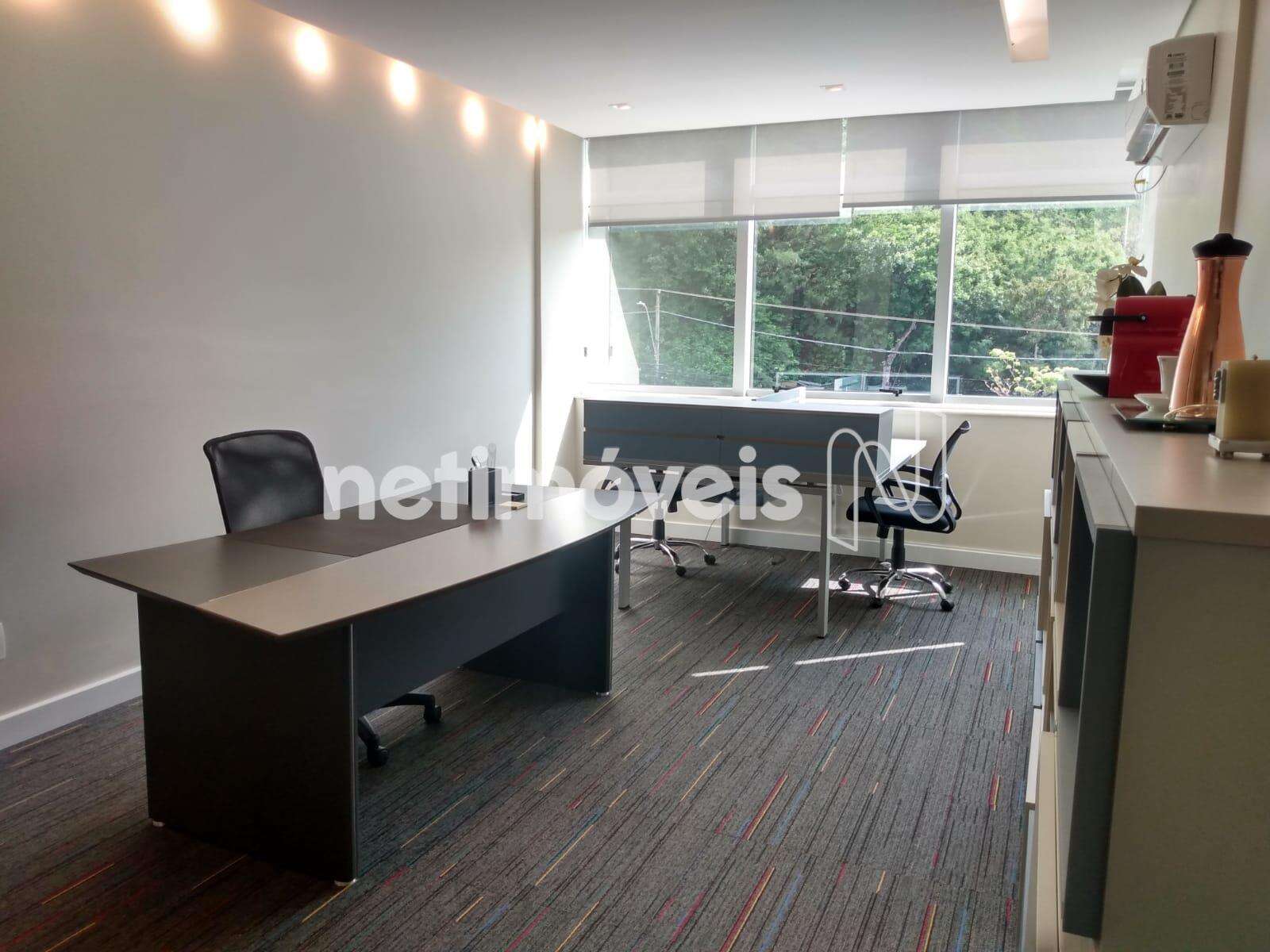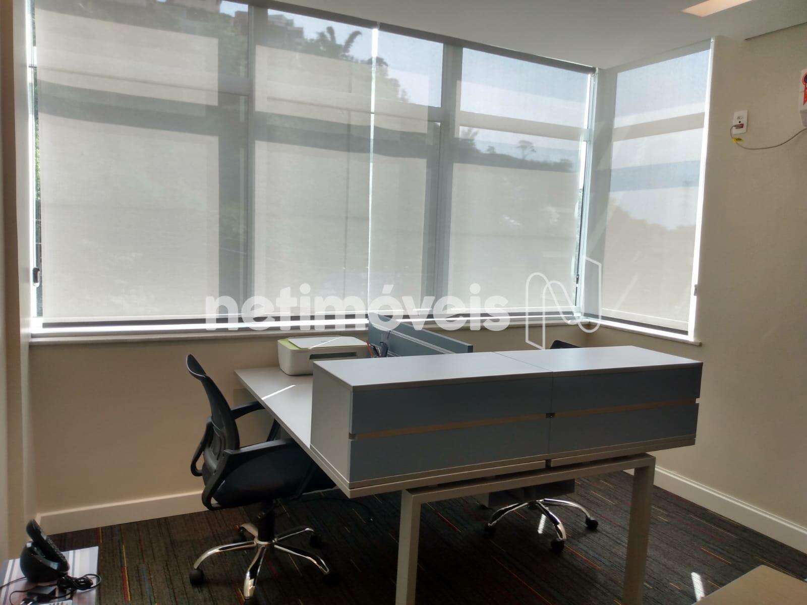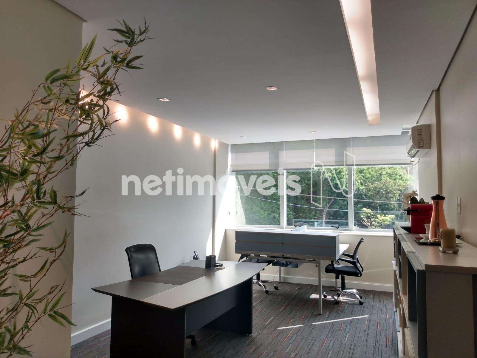 Conjunto de salas composta por 02 salas de alto padrão (cada sala tem aproximadamente 32m² e banheiros exclusivos) mais espaço para recepção. Salas decoradas com armários planejados feitos sob medida, conjunto de mesas (1 mesa presidente, 2 mesas baia e 1 mesa de reunião 6 pessoas), 6 cadeiras, iluminação de teto, rebaixamento em gesso, ar condicionado nas duas salas, carpete moderno, painel em madeira com led embutido. Linda! Muito bom gosto.