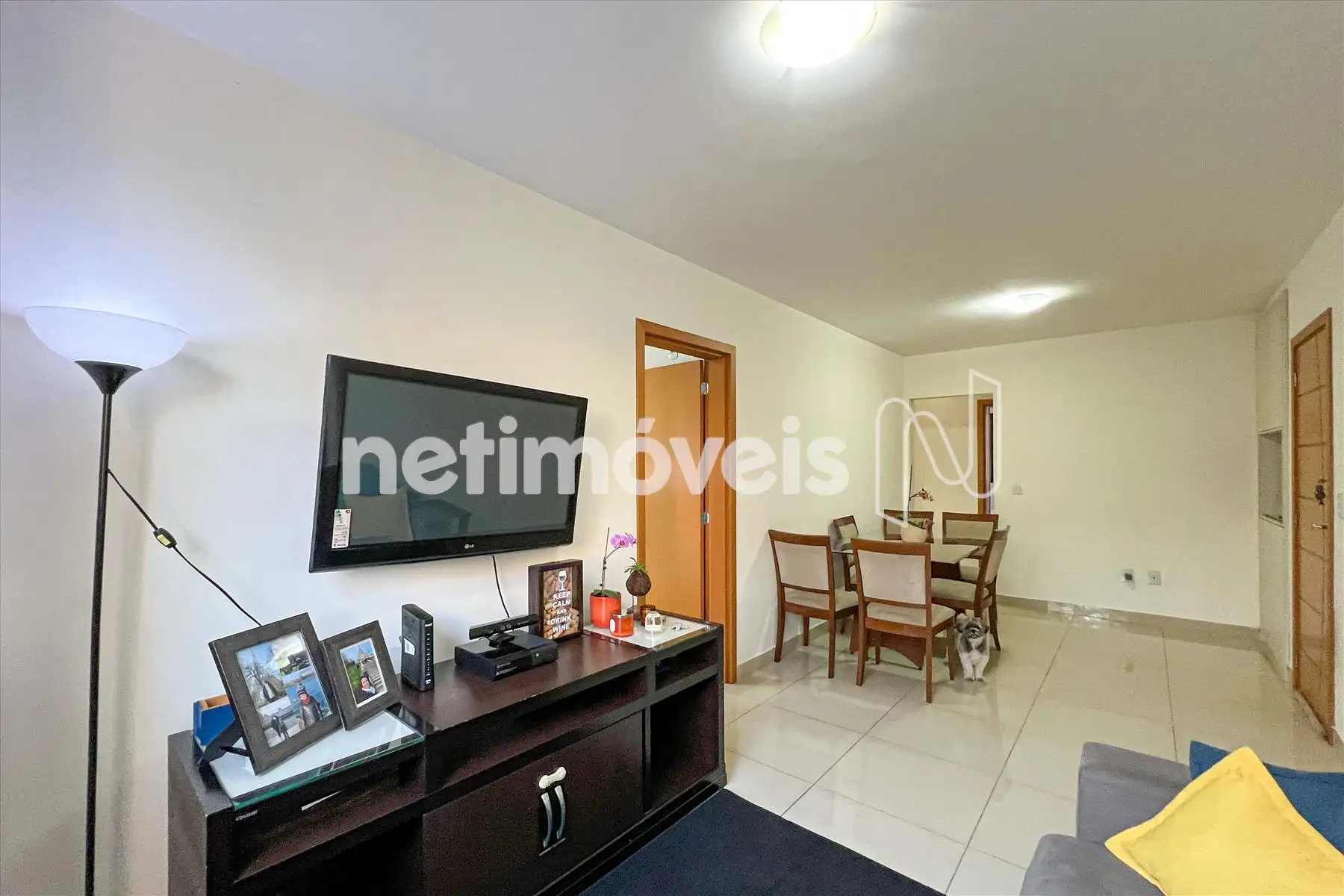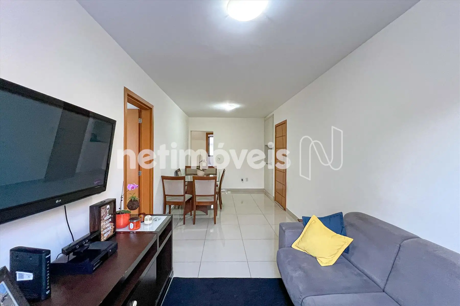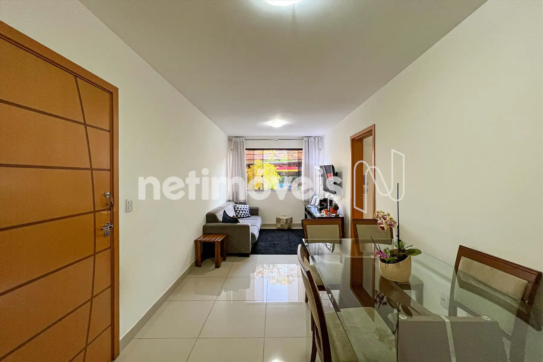 Um ampla sala para dois ambientes com piso em porcelanato;