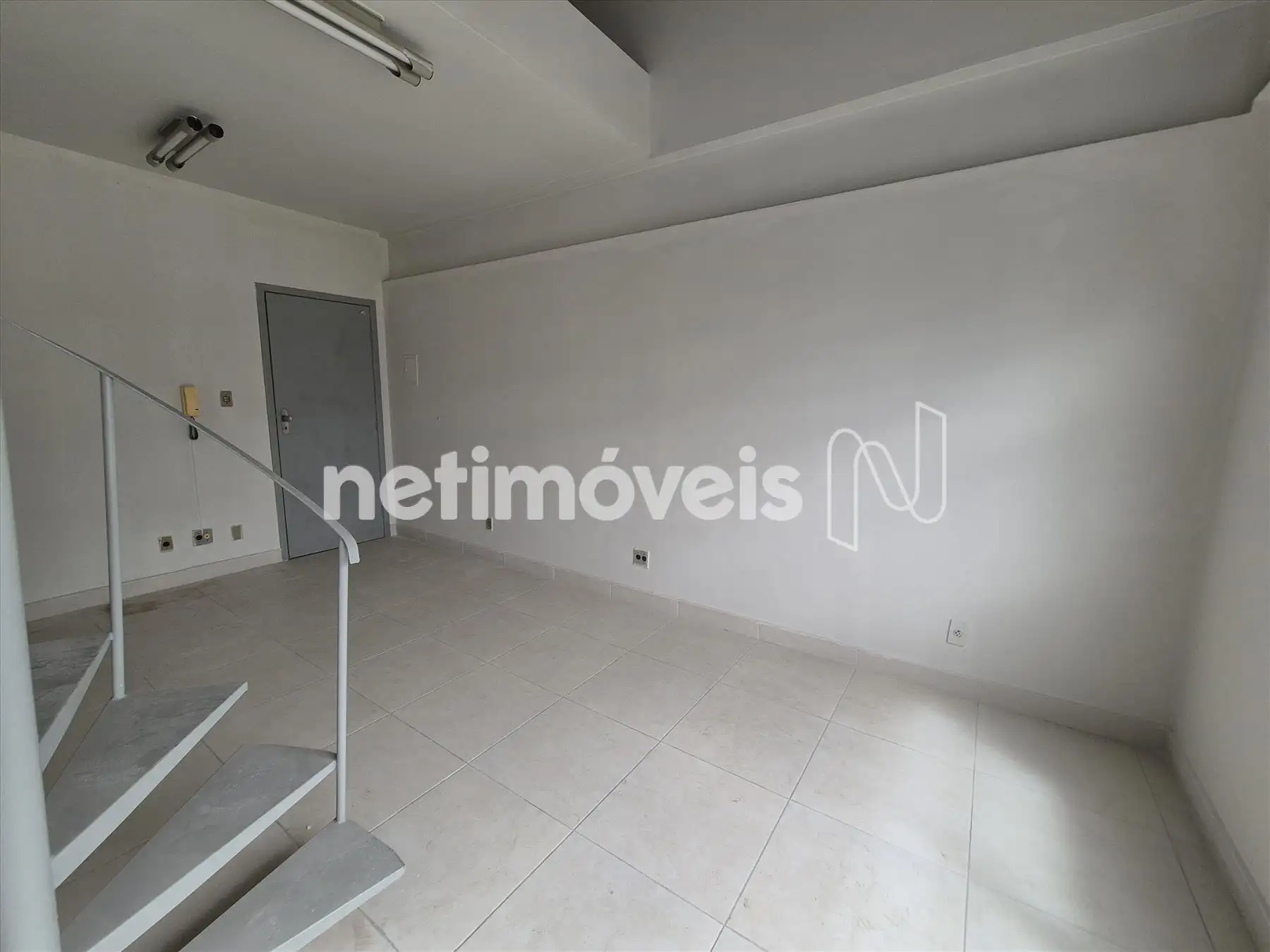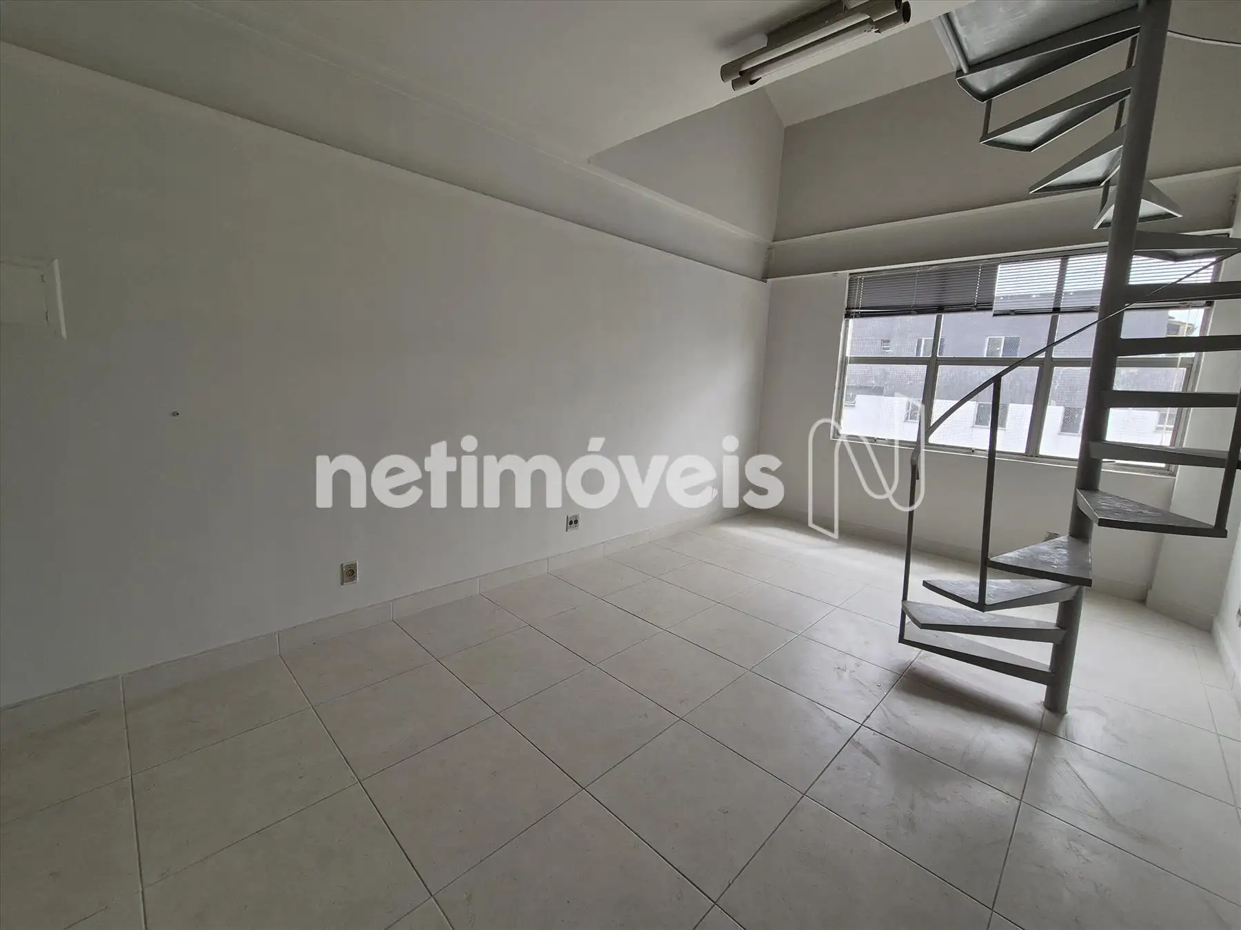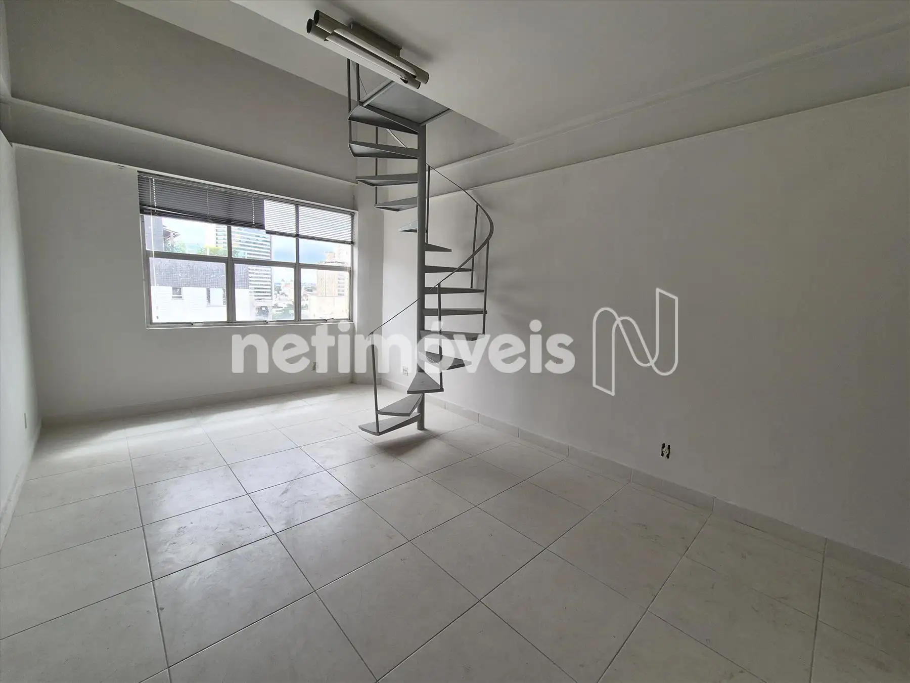 Sala clara e arejada, localizada em andar alto, com mezanino. Conta com piso em cerâmica, escada em caracol e lavabo, oferecendo um ambiente funcional e agradável para diversas atividades comerciais.