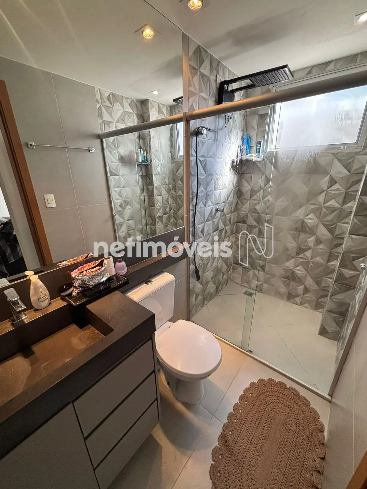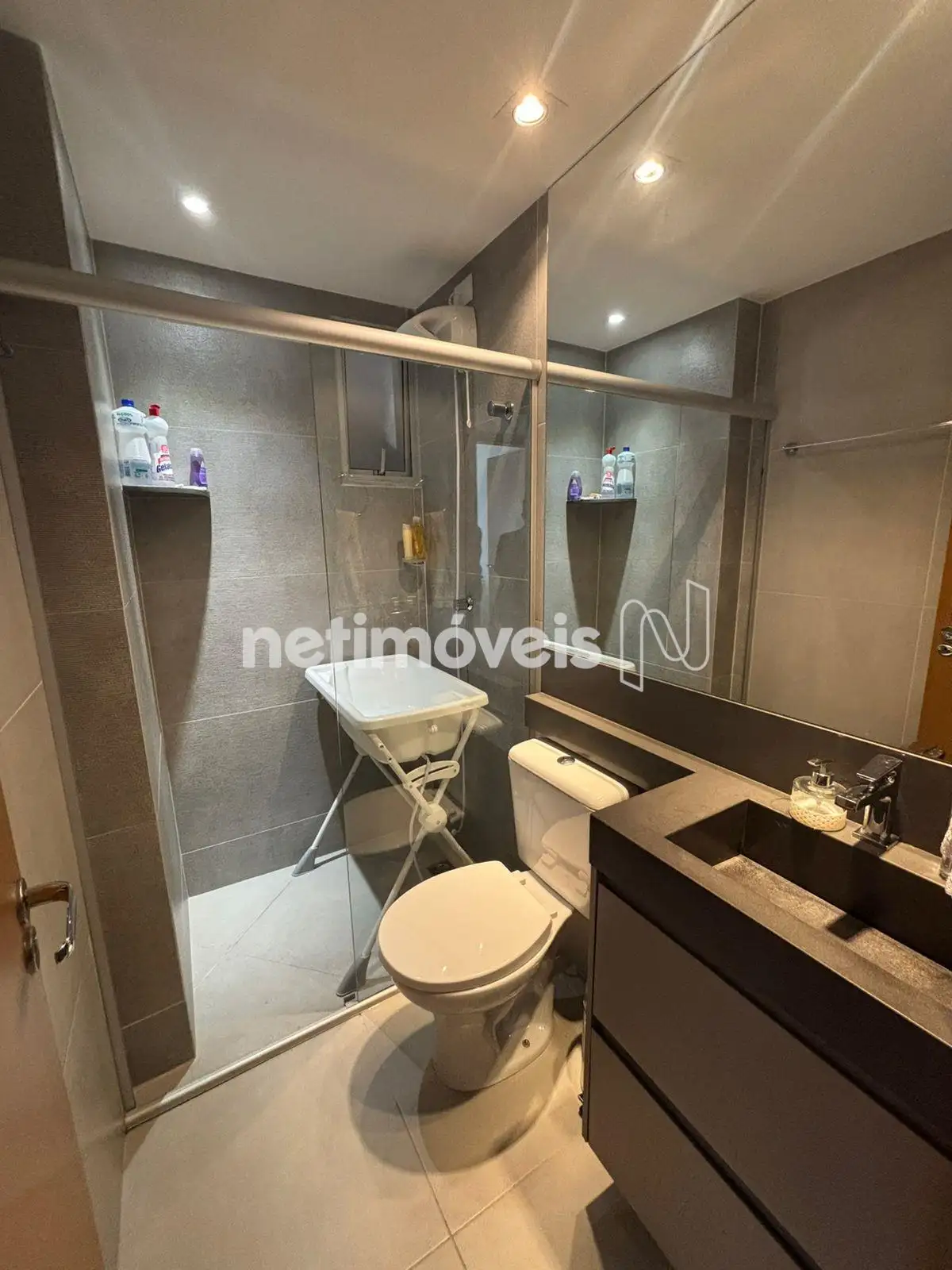 Banheiros (suíte e social) com acabamento em porcelanato.